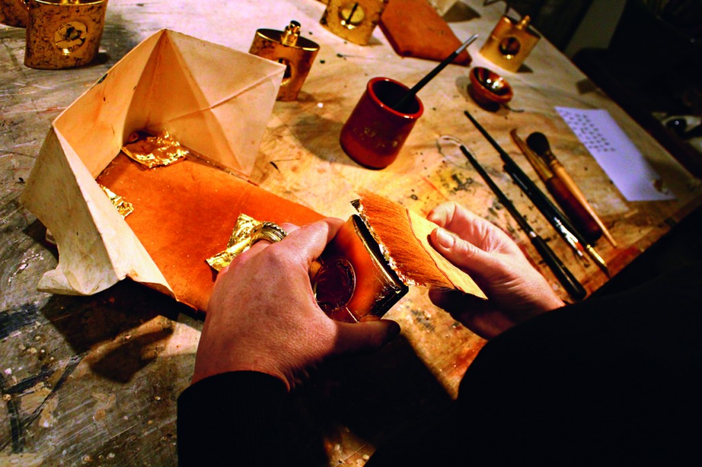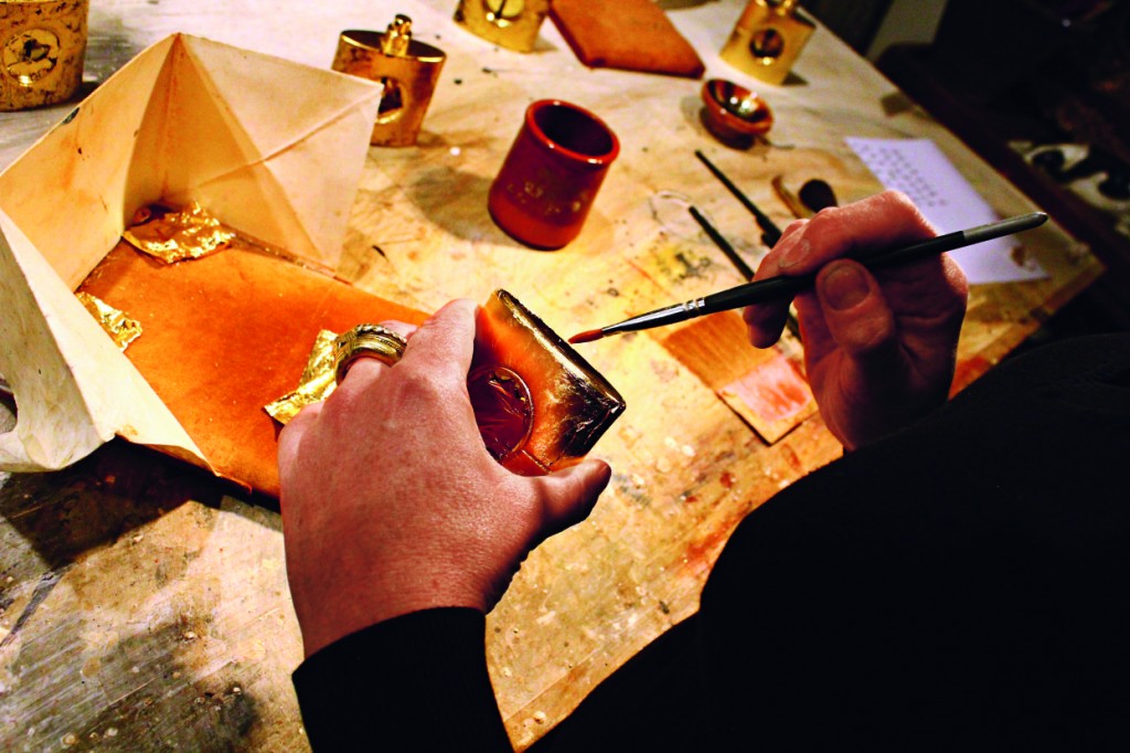 L’artiste, dont la technique est issue de vieux grimoires italiens et français et des divers ateliers où elle a été formée, est fascinée par le travail de l’or : « […] chaque geste est précis comme une méditation silencieuse[…] »