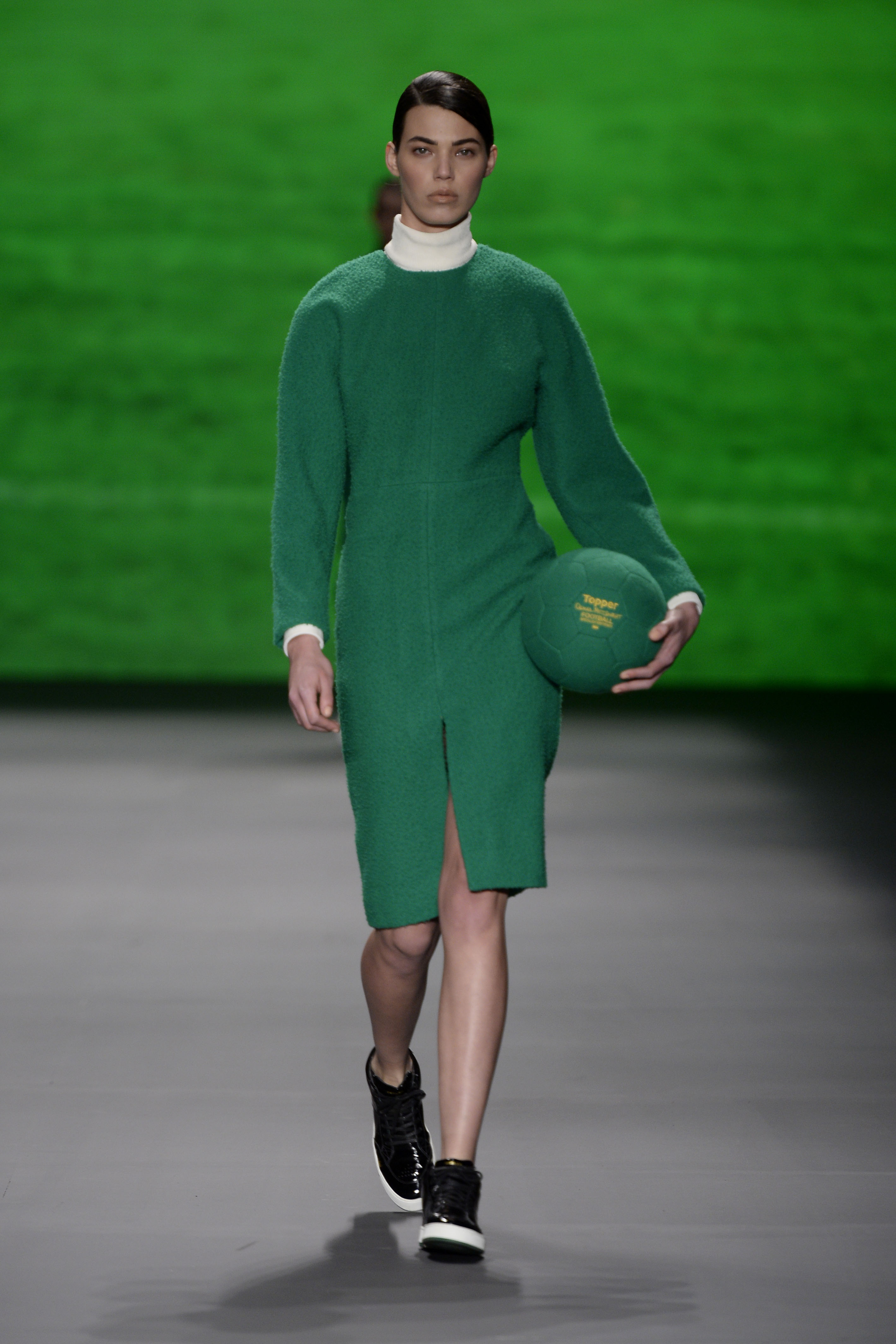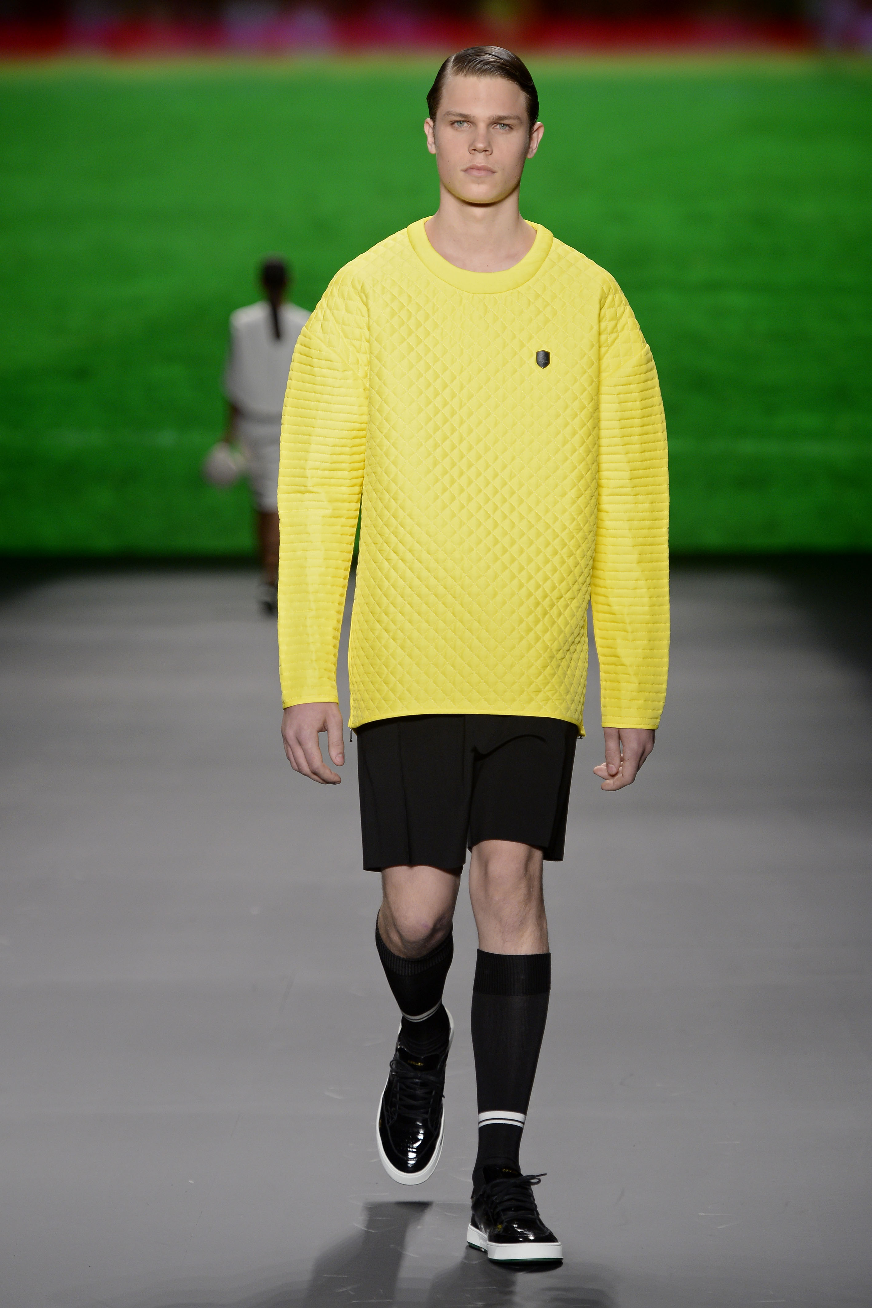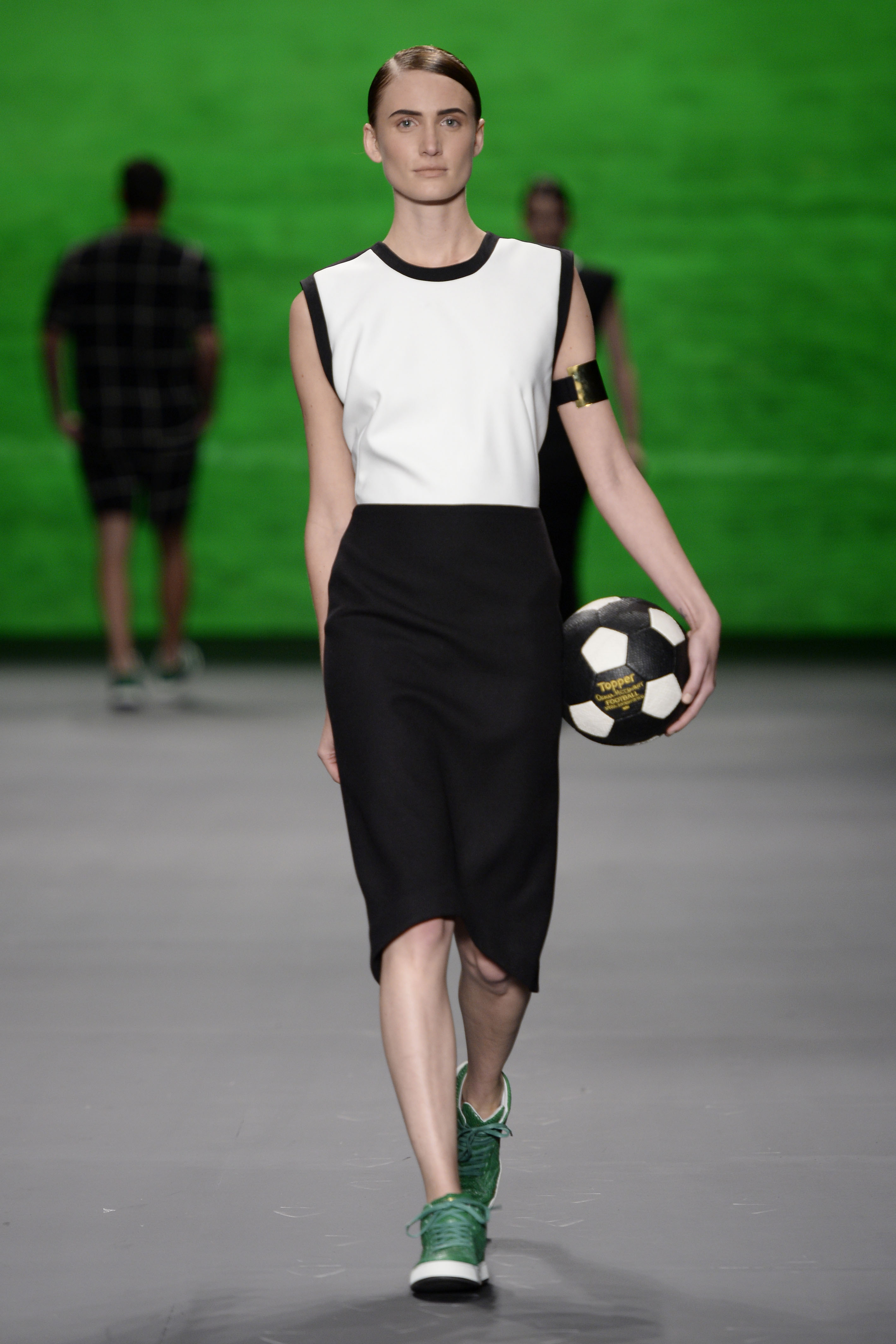 Rapidement, les codes du football sont réappropriés et élégamment intégrés aux silhouettes. Osklen montre là toute l’essence de son univers et de son savoir-faire en créant des tenues à la fois urbaines, chics et sophistiquées.