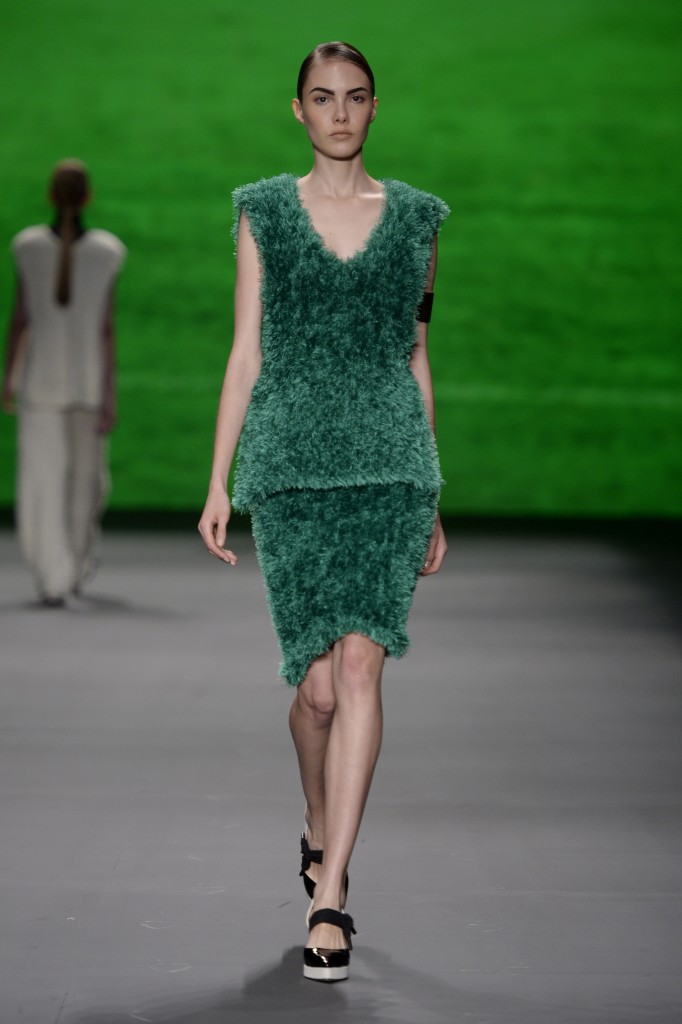 Ainsi, c’est principalement par l’utilisation de tissus nobles qu’Oskar Metsavaht parvient à rendre glamour et délicat un univers qui ne l’est pas par nature. La grosse laine bouclée, la soie ou le cuir sont autant de matières utilisées par le designer pour proposer une collection riche et attrayante.