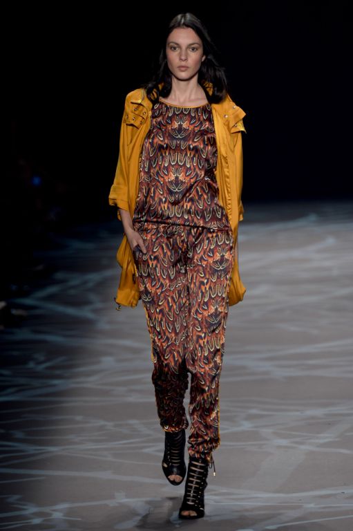 Inspirées par le thème de la forêt, les silhouettes de Valdemar Iodice, designer de la marque, rappellent des chasseurs partis pour une quête mystérieuse.