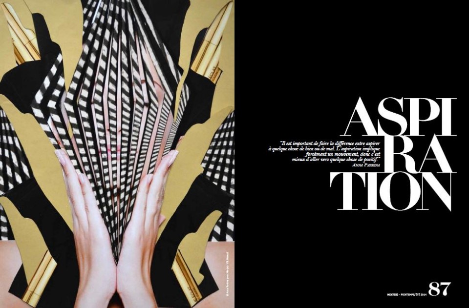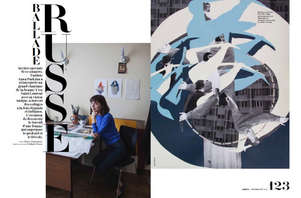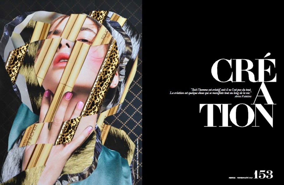 Invitée du numéro, Anna Parkina, connue pour son travail autour du collage, met en valeur l’éclat le temps d’une collaboration avec l’univers de la beauté Yves Saint Laurent et signe la version collector du magazine.