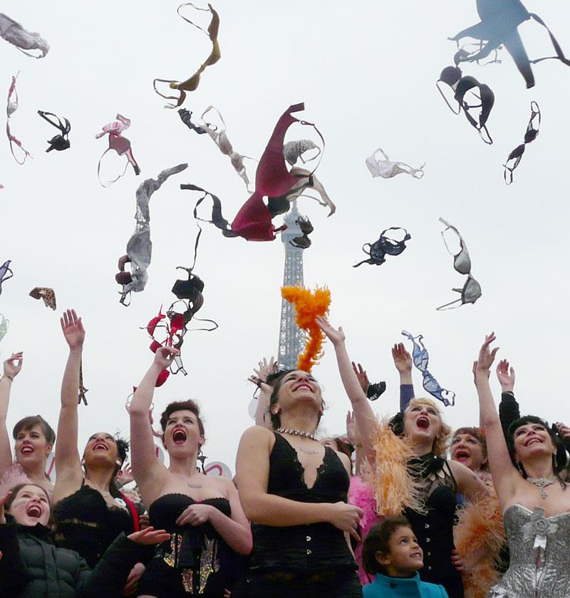 Point d’orgue de cet après-midi : un gigantesque lancer de soutiens-gorge avec la Tour Eiffel en toile de fond. Un geste symbolique qui marque l’implication de chacune dans la prévention du cancer du sein.