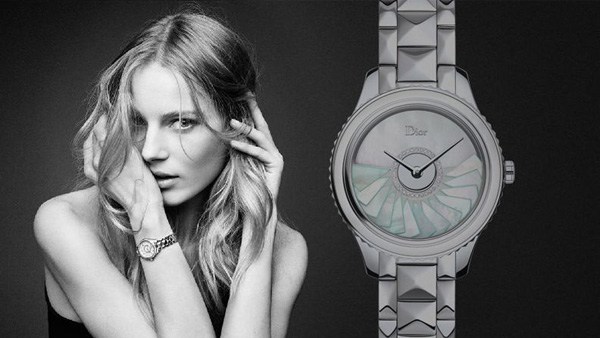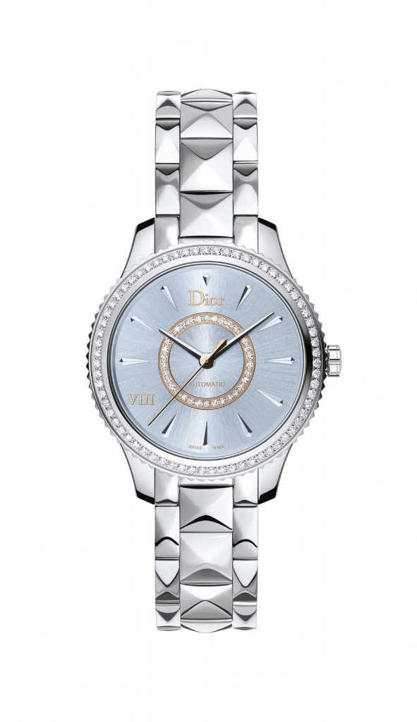 Le rose, évoquant la teinte de la maison normande de son enfance à Granville s’invite sur la lunette, les aiguilles, le fond du boîtier et le cadran dans un camaïeu enchanteur. Enfin, le bleu pâle fait son apparition sur la Dior VIII Montaigne.