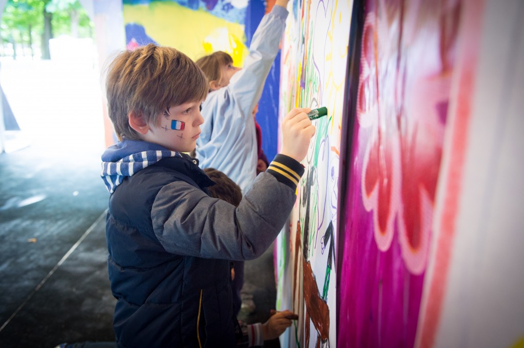 Pour remercier tous les petits artistes et architectes en herbe, certains dessins ont été utilisés pour la composition d’une grande fresque installée à la station de métro Concorde à Paris, où les oeuvres les plus insolites sont exposées sur écran.