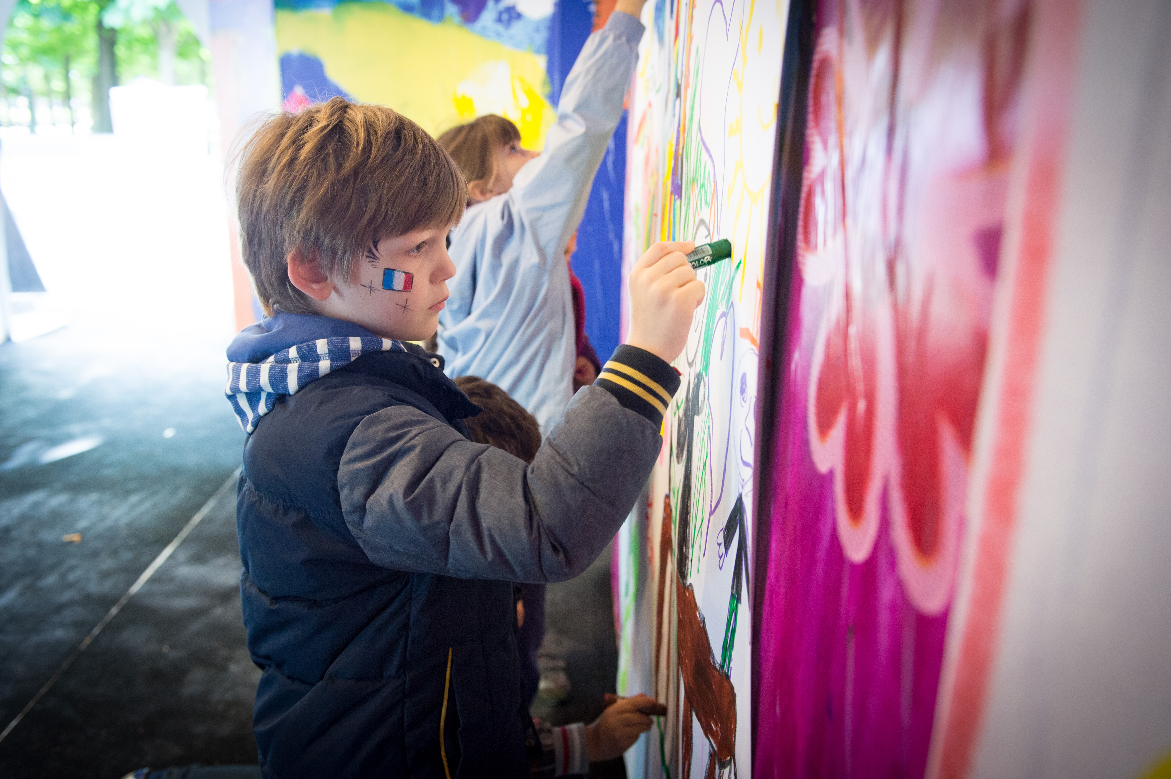 Sur les milliers de dessins reçus de toute l’Europe, 16 dessins ont été sélectionnés pour faire partie de cette grande construction.
