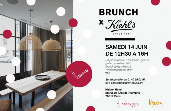 Ce samedi, venez profiter d’un diagnostic beauté autour d’un brunch exclusif dans le cadre apaisant du Hidden Hotel situé à quelques pas de l’Arc de Triomphe et des Champs-Elysées et repartez avec un sac d’échantillons personnalisés ! Les conseillers de la marque Kiehl’s, qu’on ne présente plus, seront présents pour établir le diagnostic beauté des parisiennes et leur remettre des échantillons correspondants au traitement prescrit !