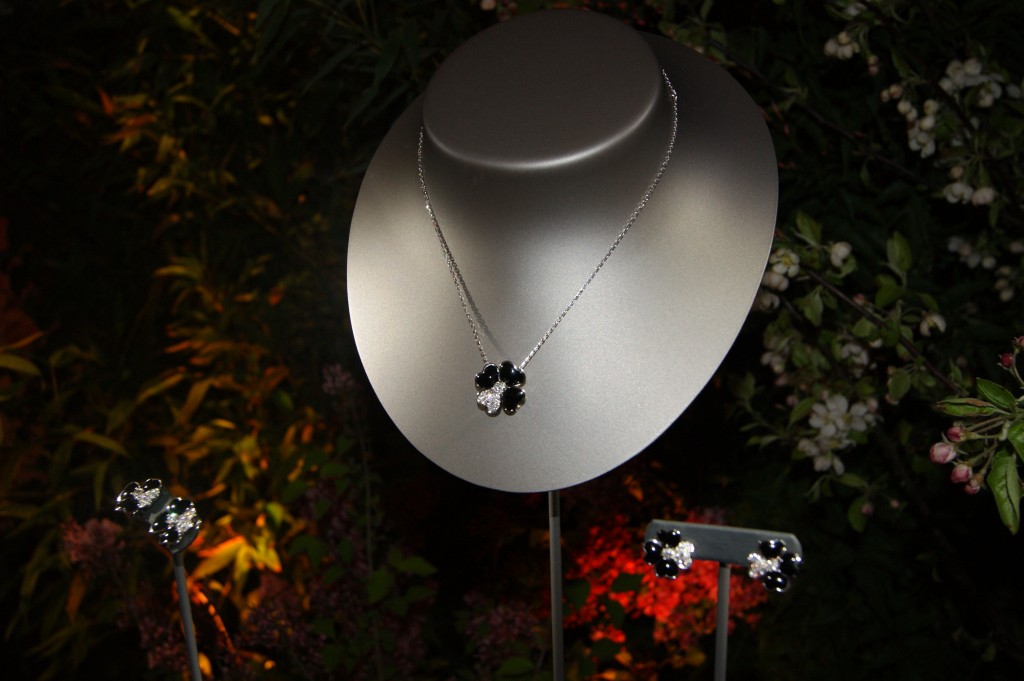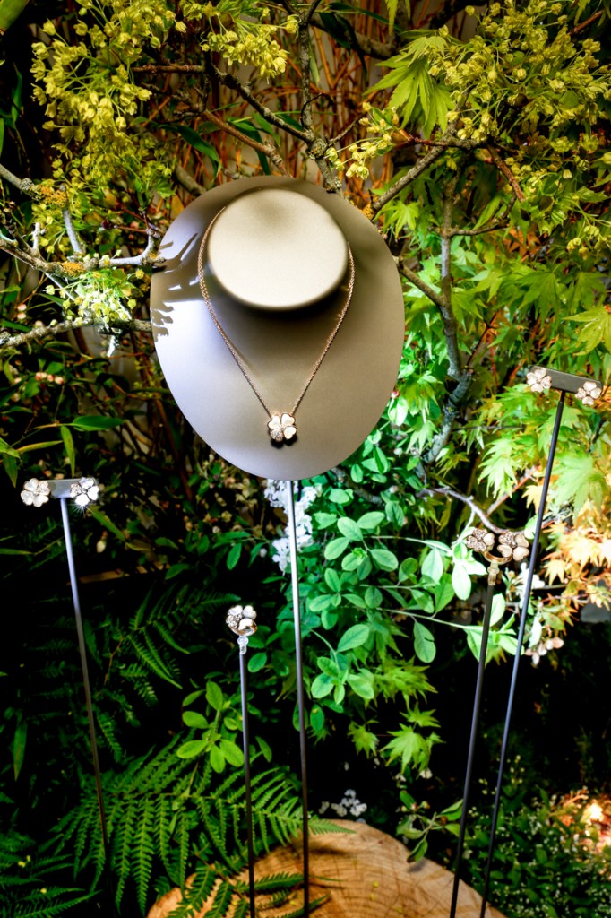 Dans ce magnifique écrin de verdure, les créations Cosmos, qui conjuguaient jusqu’à présent l’or et d’étincelants diamants, se dévoilaient sous un jour nouveau s’épanouissant sous nos yeux dans de nouvelles associations, telles de magnifiques fleurs pleines de grâce et de délicatesse.