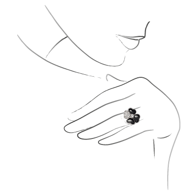 La brillance de l’onyx et les reflets chatoyants de la nacre ont fait naître des jeux de lumière inédits. Symbole d’éternité, un diamant vient se lover au centre de chaque création. Dans un ultime raffinement, l’une des pétales se retrouve sertie de diamants comme caressée par des perles de rosée.