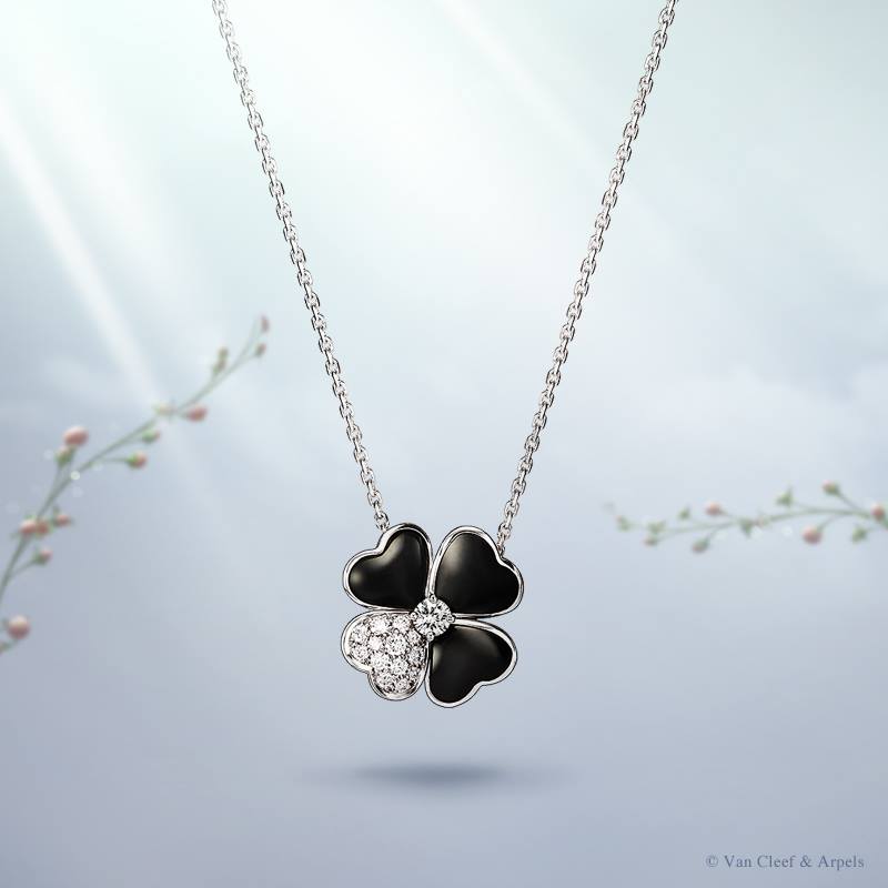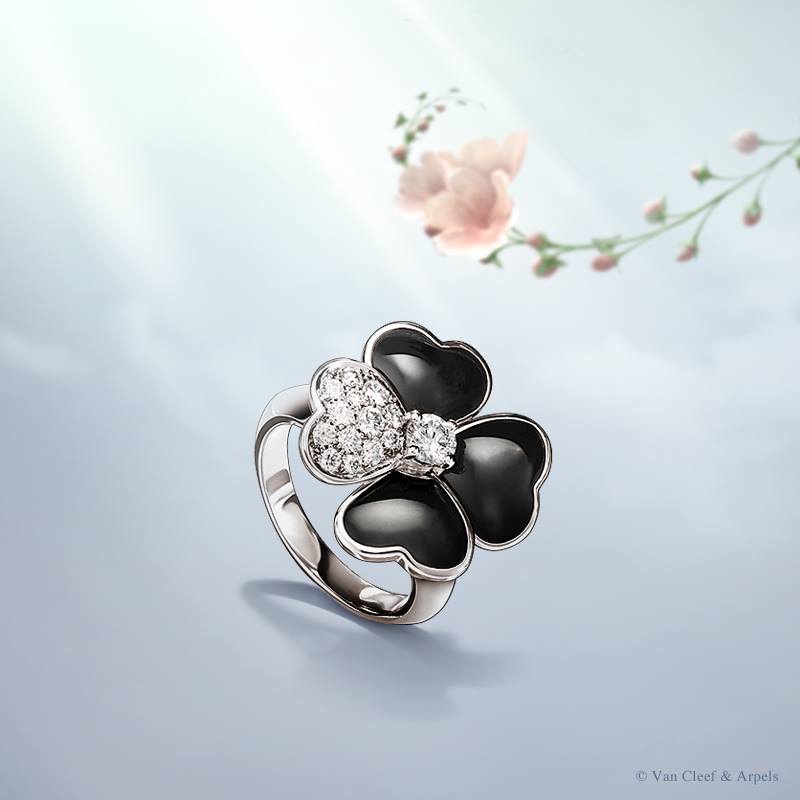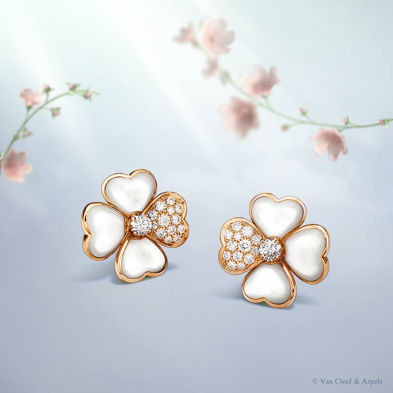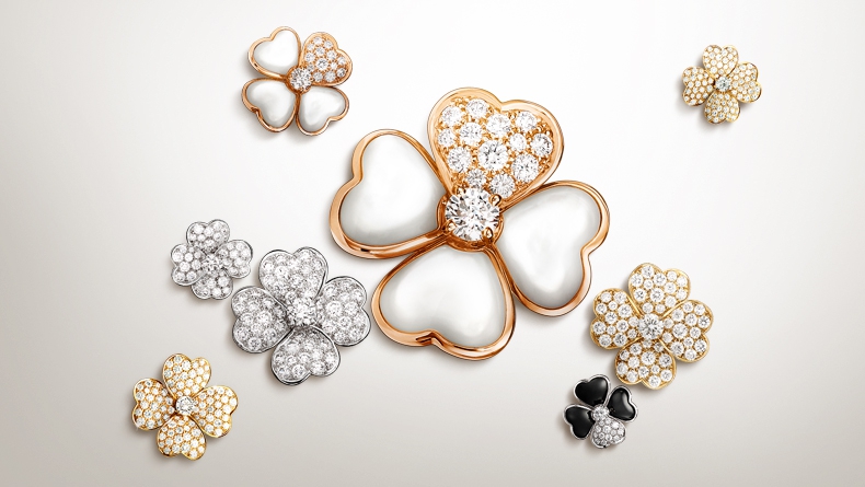 Subtile alliance de douceur et d’éclat, cette floraison joaillière rend également hommage à la chance, autre source d’inspiration de la maison de joaillerie, à travers l’éclosion de créations printanières parées de nacre blanche ou d’onyx.