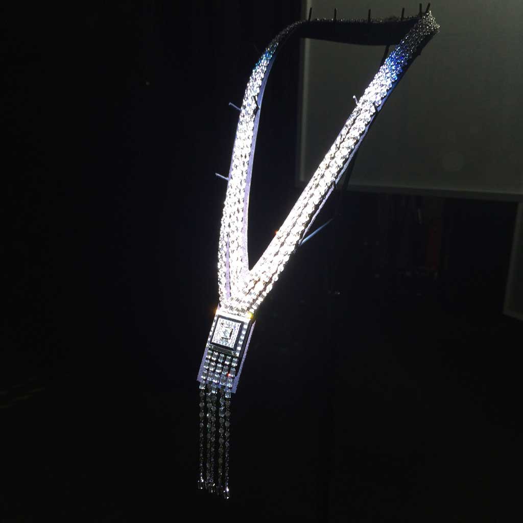 Au son de mystérieuses cordes en pleine répetition, la Maison Chanel nous a présenté en avant-première quatorze précieuses parures rivalisant de splendeur et de créativité aux noms si évocateurs : Charleston, Symphony, Broadway, Morning in Vendôme, Tuxedo, Midnight, Bubbles, Jazz, Sunset, Cruise, Muse, Sunrise, Café society, Smoking.