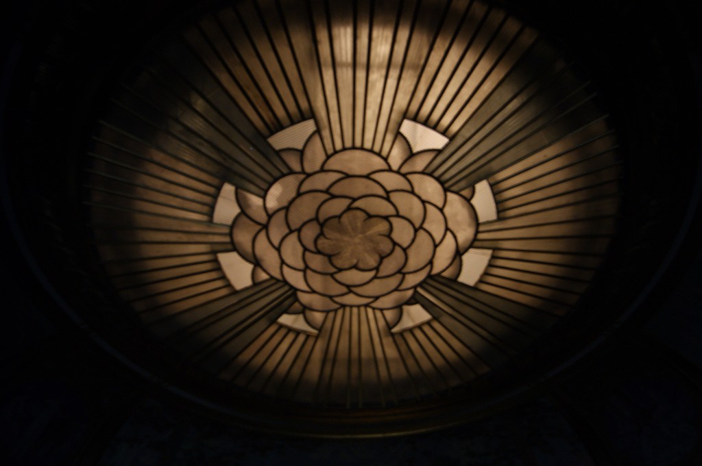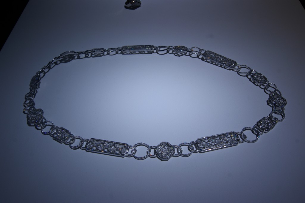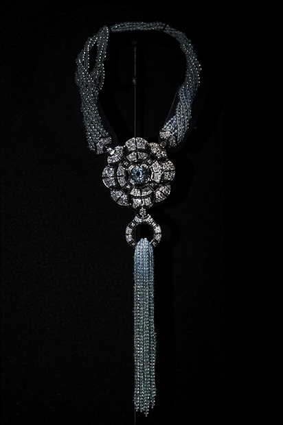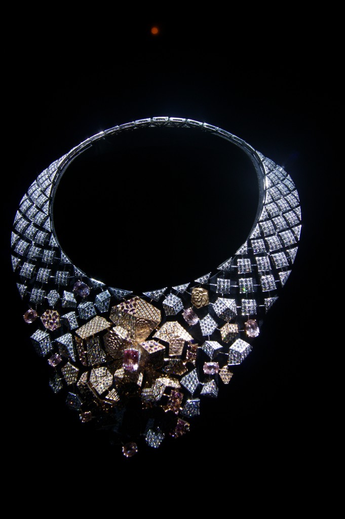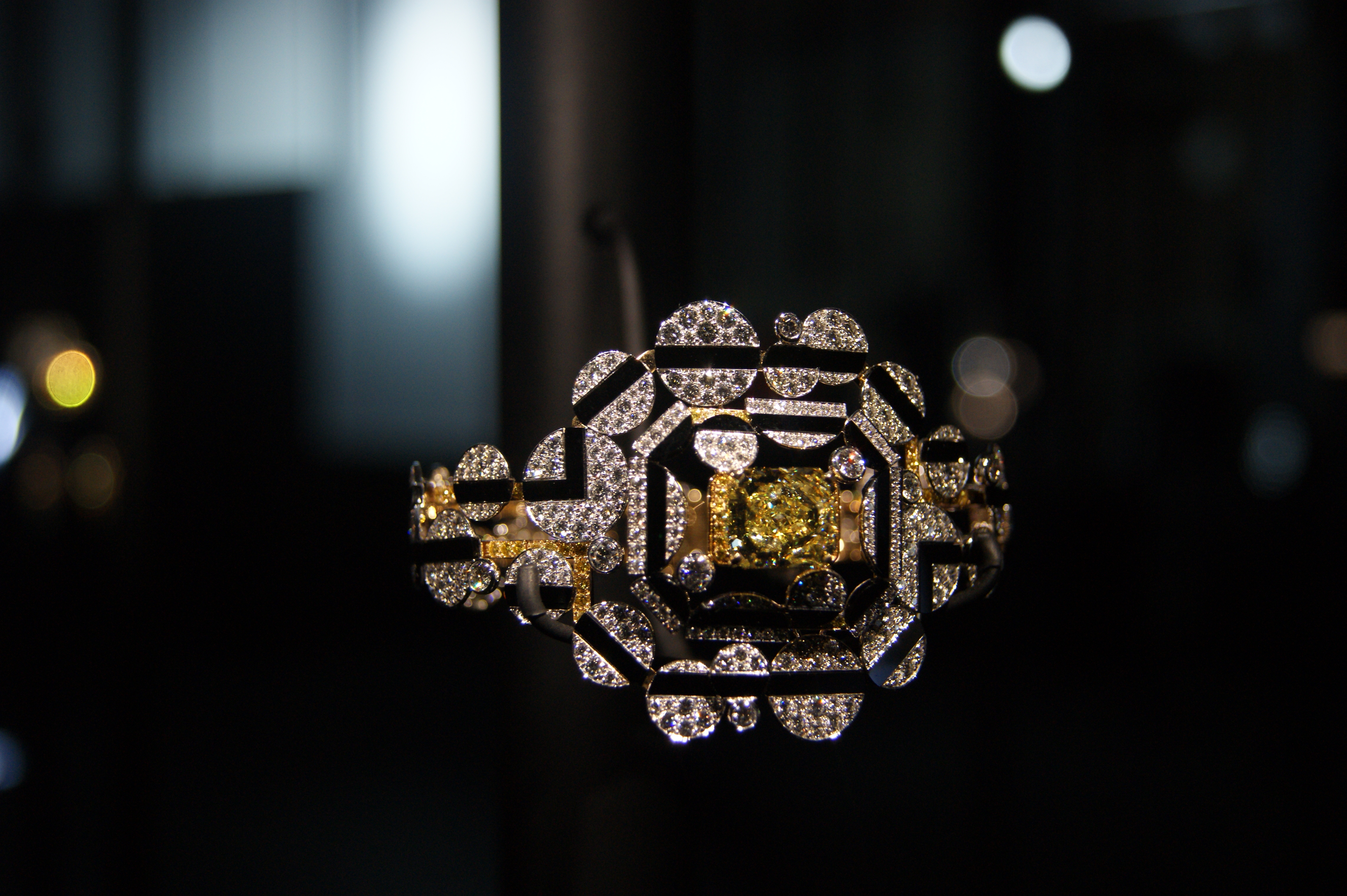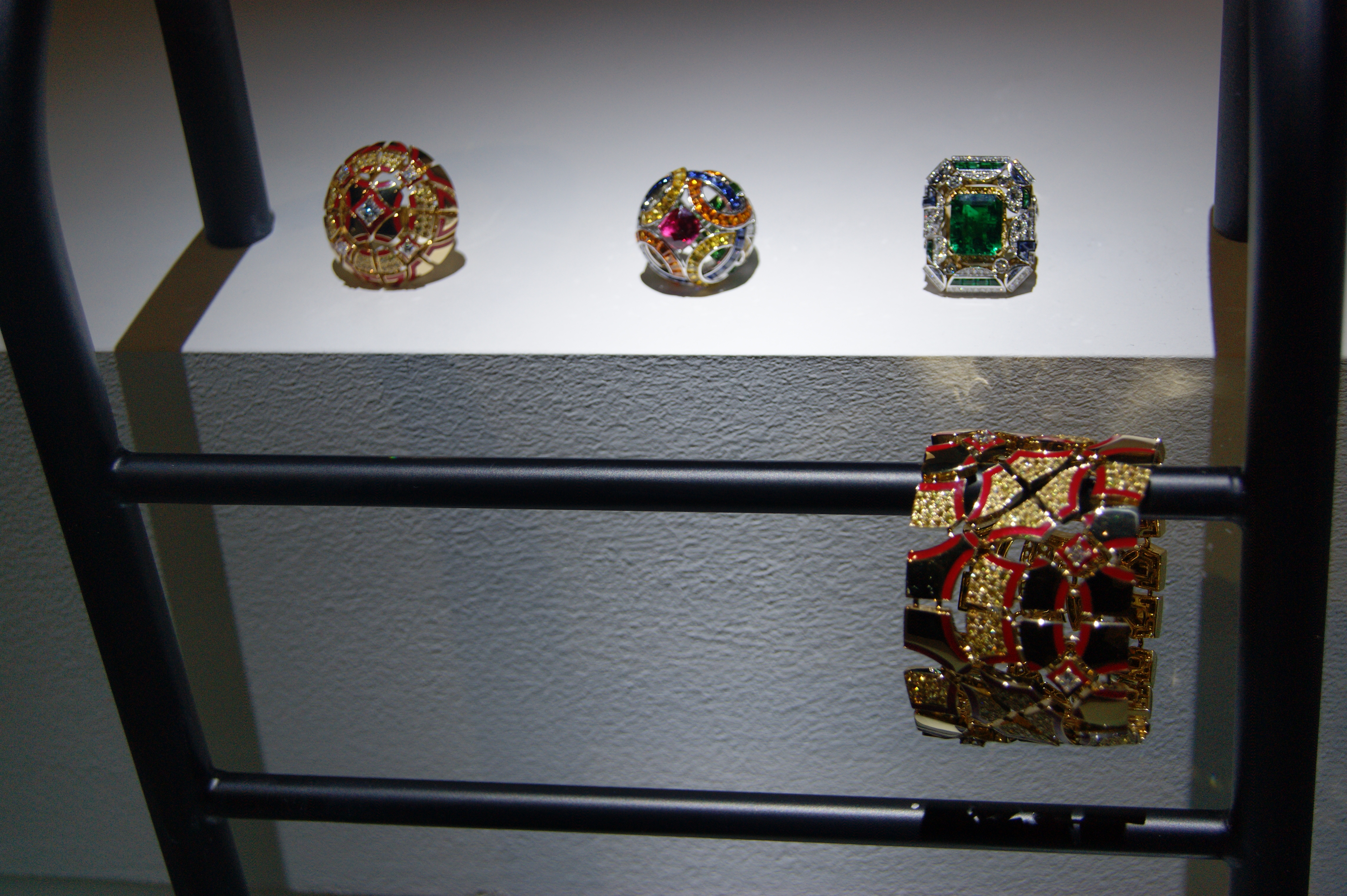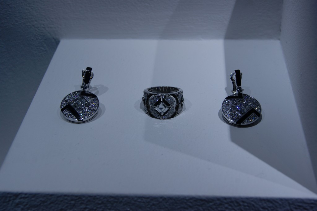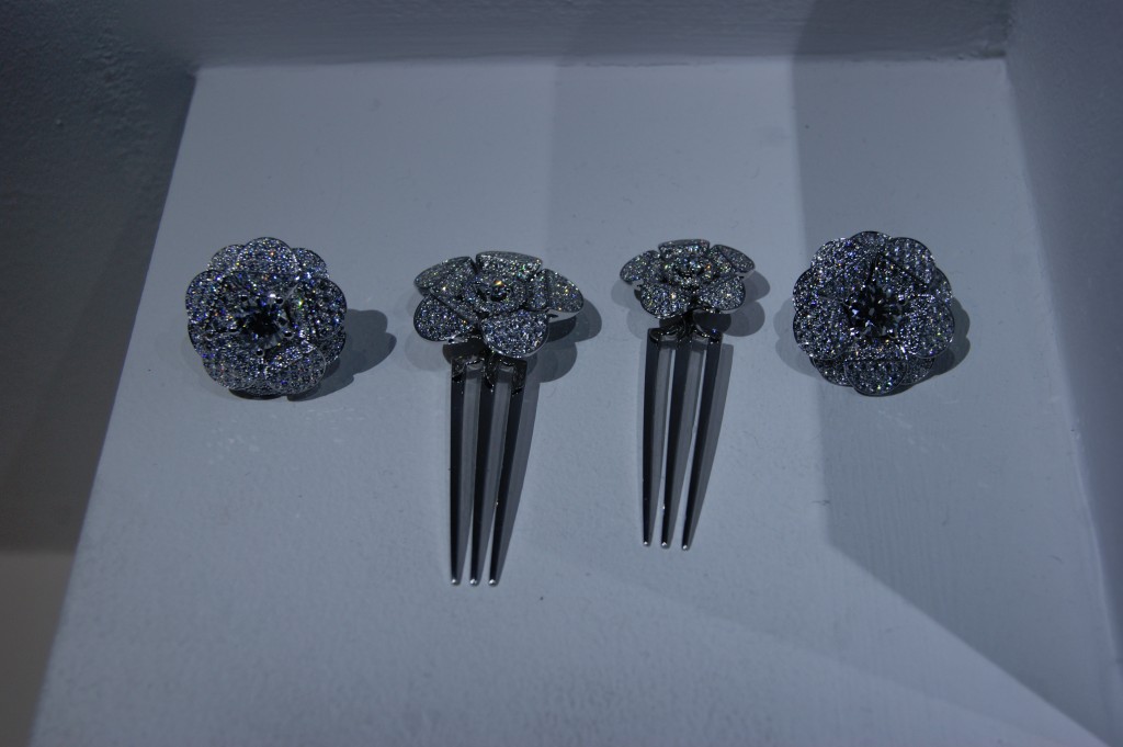 Dans une mise en scène empreinte de gravité, les pièces les plus remarquables furent mises en lumière sous la coupole bienveillante du plafond ornée d’une fleur art-déco géante, dont la forme n’est pas sans rappeler le fameux camélia si cher à Coco Chanel.