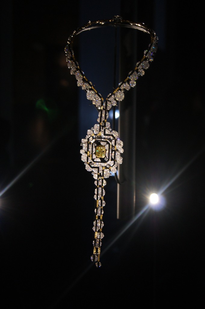 Ainsi la pièce maîtresse de la ligne, un collier monumental, reprend la forme de la célèbre place Vendôme au centre de laquelle un diamant jaune taille émeraude de 12 carats figure l’éclat du soleil.