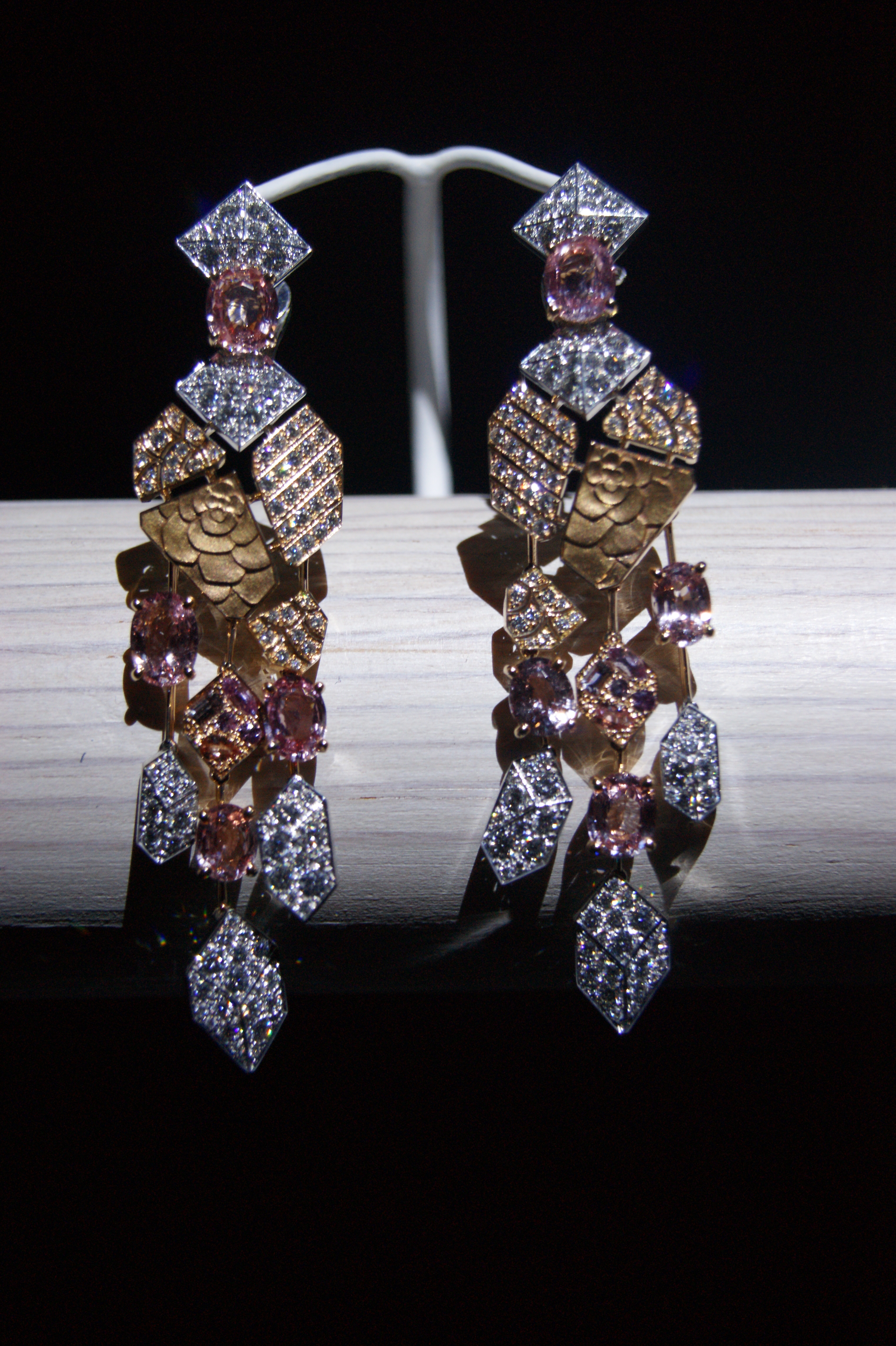 Tel un jaillissement d’or parsemé de magnifiques saphirs Padparadscha, la parure Sunset grave pour l’éternité les couleurs douces et chatoyantes du soleil couchant dans un camaïeu de roses poudrés sur lequel une incroyable richesse de métiers et de savoir-faire se sont penchés.
