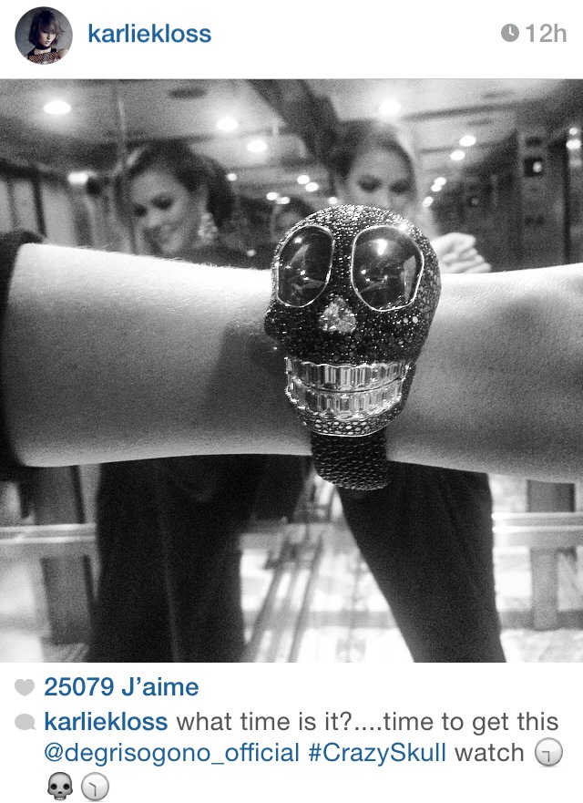 La très convoitée Karlie Kloss est tombée sous le charme de la Crazy Skull en diamants noirs qui n’a pas quitté son poignet de la soirée.
