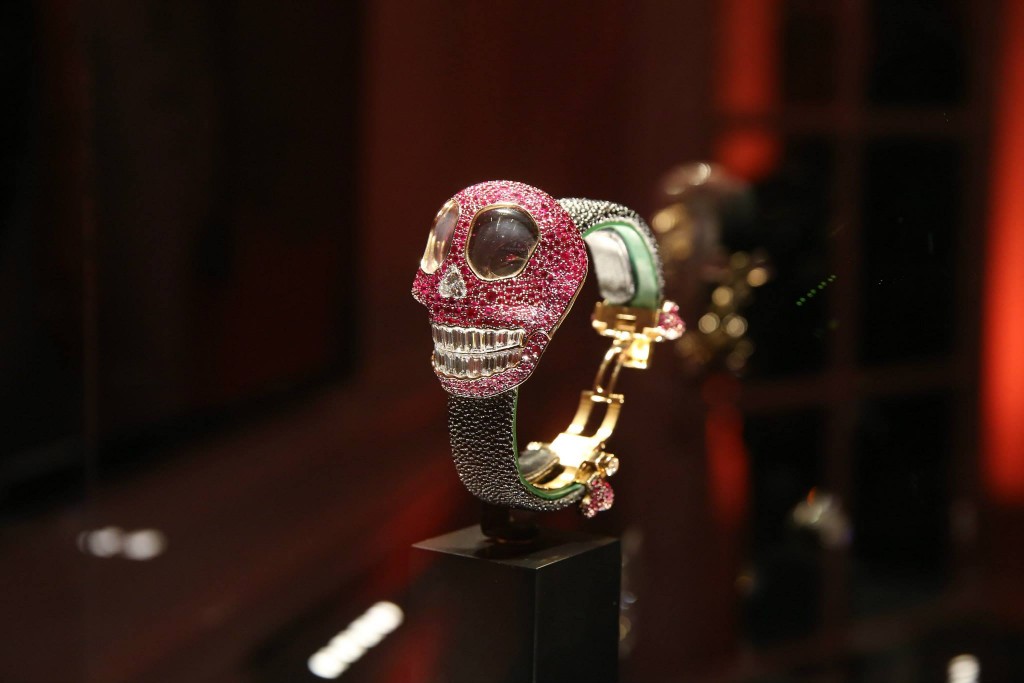 Mais la véritable star de la soirée était bien la Crazy Skull. Conçue comme un objet d’art d’exception et dotée de matériaux rares et précieux, la montre réalisée en édition limitée a nécessité près d’un an de recherche et développement et 250 heures d’expertise joaillière.