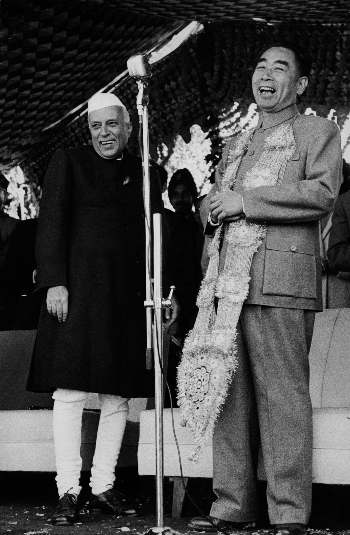 Jawaharlal Nehru et Zhou Enlai, Inde, 1956 Tirage argentique signé Marc Riboud Courtesy Galerie ArcturusDès ses premiers clichés, Marc Riboud fait déjà preuve d’un formidable don pour capter la grâce des gestes et d’une certaine rigueur esthétique, soucieux de la composition de sa photo.