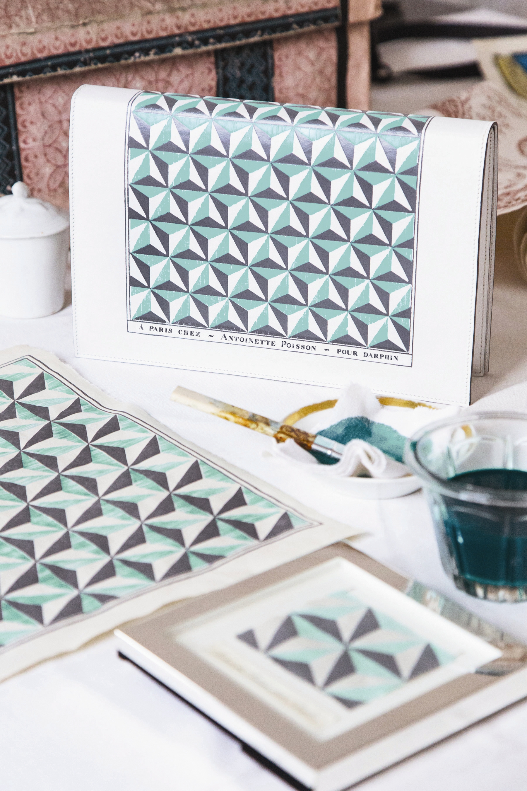 La marque de cosmétiques haut de gamme Darphin et le spécialiste du papier peint dominoté A Paris Chez Antoinette Poisson ont allié tout leur savoir-faire dans une pièce d’exception. Le fruit de cette conjugaison de talents n’est autre qu’une pochette en cuir imprimé de dominos, aux couleurs emblématiques de la maison de cosmétique, entièrement faite à la main en dix exemplaires numérotés.