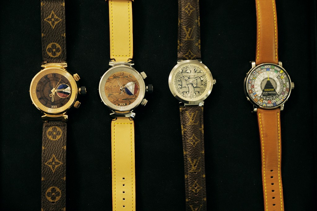 La collection 2015-2016 laisse une grande place aux accessoires, et en particulier à la maroquinerie, emblème de la marque, qui exhibe le traditionnel monogramme LV. Pochettes, besaces et malles, très présentes, étaient autant d’invitations au voyage.