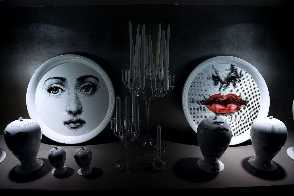 De simple muse, Lina Cavalieri se fit ainsi motif à part entière que l’artiste reproduisit à l’envi. Fornasetti transforma son visage comme il le souhaitait, dessinant des assiettes ou des tables où la soprano offre des expressions variées, porte le voile ou adopte la moustache de Hitler ou celle plus surréaliste de Salvatore Dali.