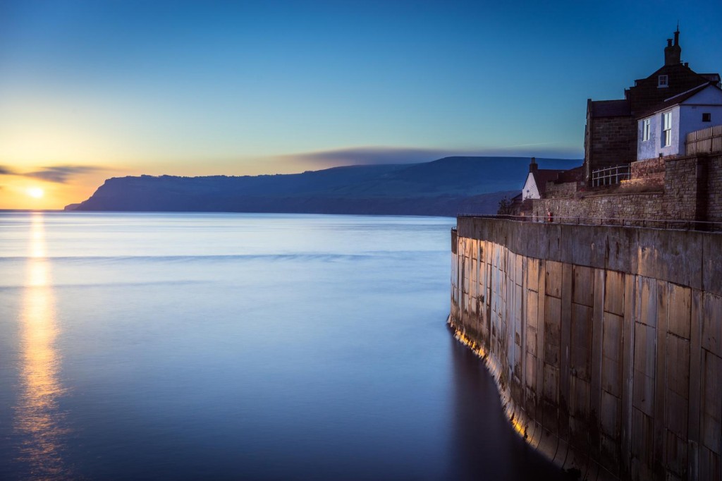 Et c’est à marée basse que la palette de bleu d’un soleil couchant vient caresser les côtes de la Baie de Robin des Bois à travers l’objectif de Mark Hepples.