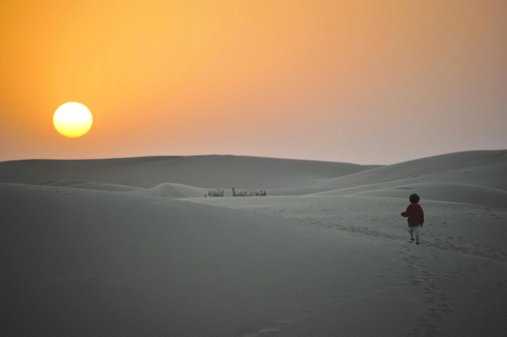 Et lorsqu’un gamin court après le soleil en plein désert indien, c’est sous l’objectif de Brian Benson que les douces nuances du soleil couchant se révèlent dans le calme de l’étendue sableuse.