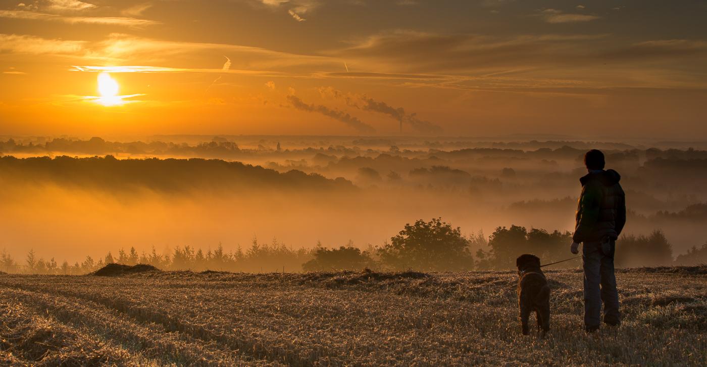 Oliver Wright/Photocrowd.com « Dog Walk on a Misty Sunrise » taken on Towton Moor in Yorkshire, UK, using a tripod and 10 second timer.Le lever de soleil prend des allures de paysage onirique à travers le regard d’Oliver Wright, qui joue sur les ombres et les couleurs d’une bien belle façon. Tout respire ici la quiétude et incite à la sérénité parmi les nuages.