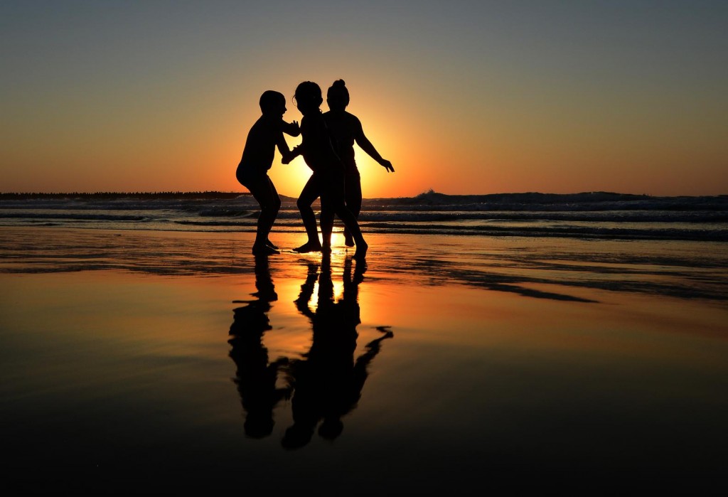 A Bali, lorsque le soleil couchant capturé par Azman Bachok disparaît au loin, l’obscurité naissante et les vagues venant s’écraser sur la plage n’empêchent pourtant pas les familles d’entrer en mer.