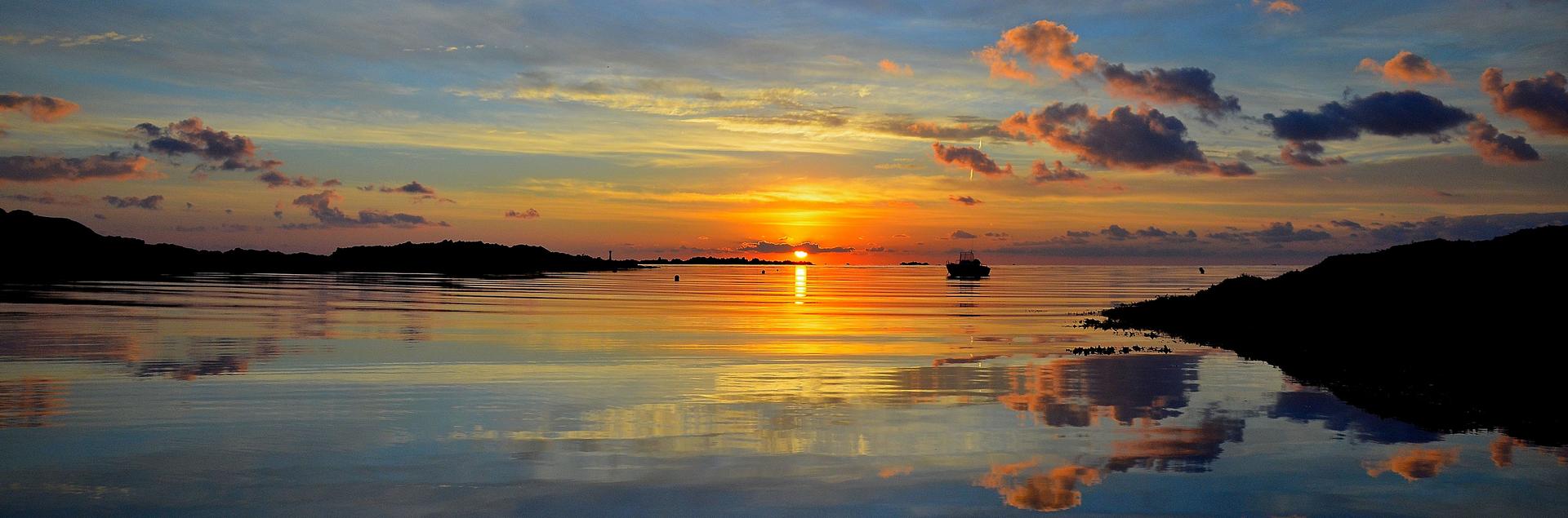 Le coucher de soleil selon Mark Butterworth se reflète sur les eaux dans les eaux calmes au large de l’île Guernesey.