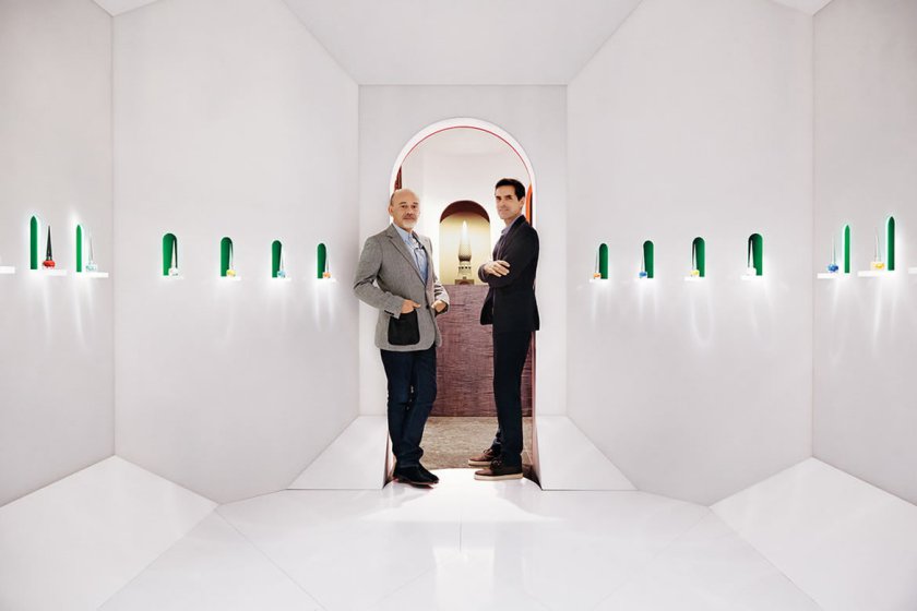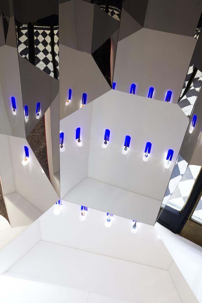 C’est ce même flacon qui a inspiré l’architecte Pierre Yovanovitch pour dessiner l’intérieur de la boutique, dont la façade est inscrite au titre des Monuments Historiques.