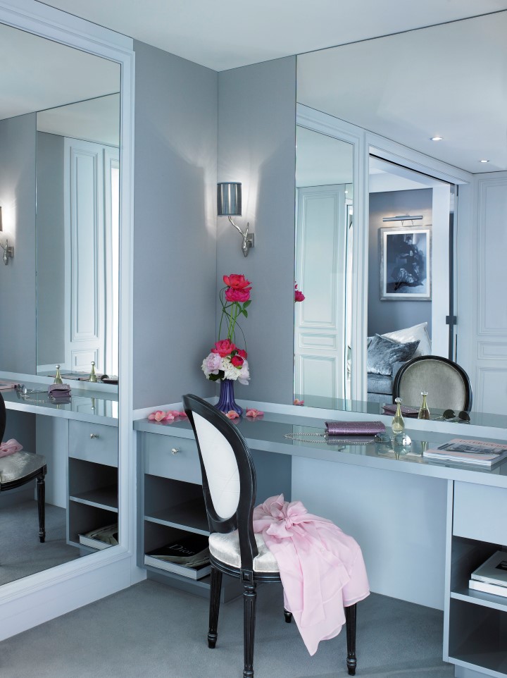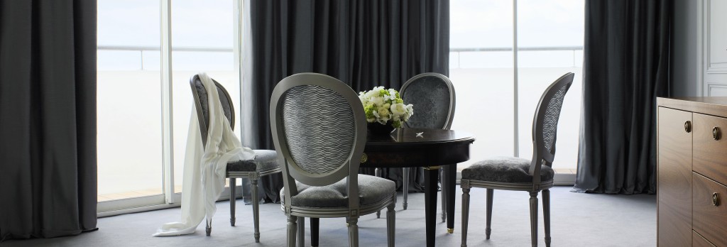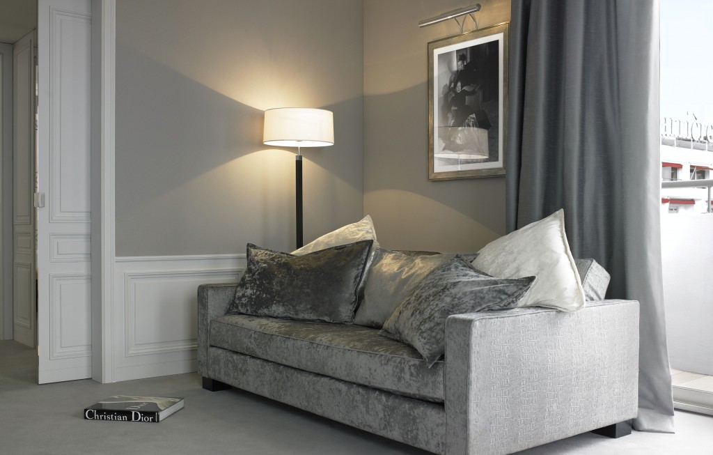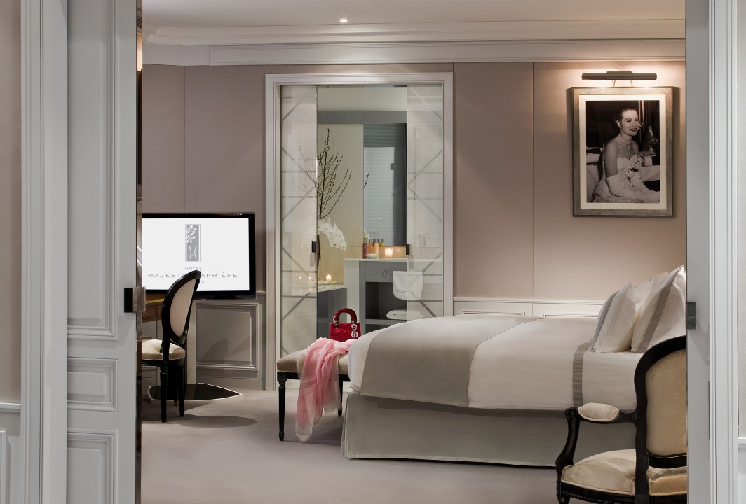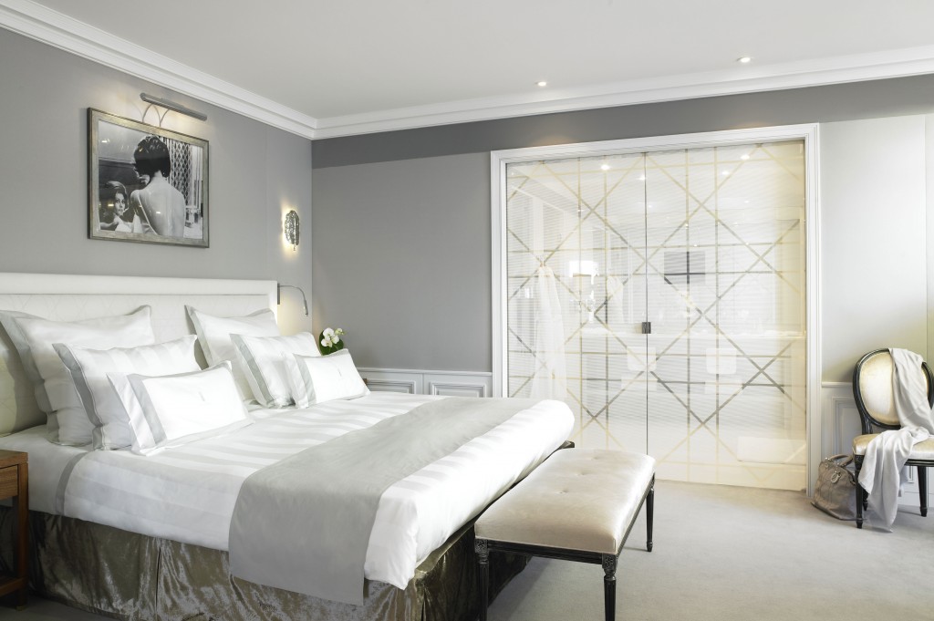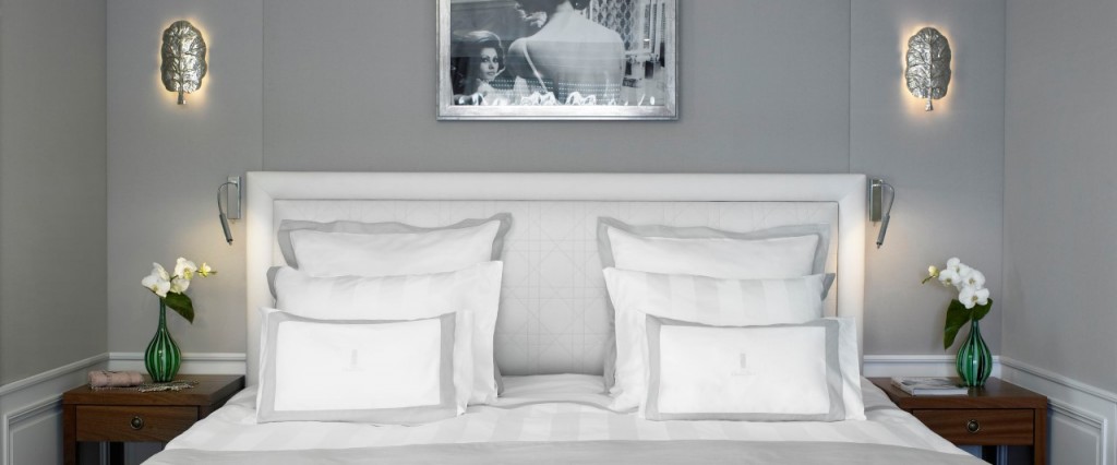 Les chambres portent également son empreinte avec leurs tons de gris, leurs fauteuils Pullman et la réplique du bureau de Monsieur Christian Dior.