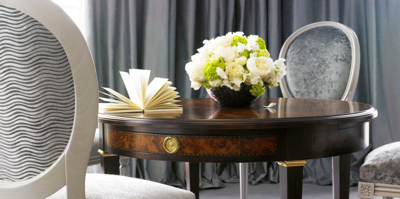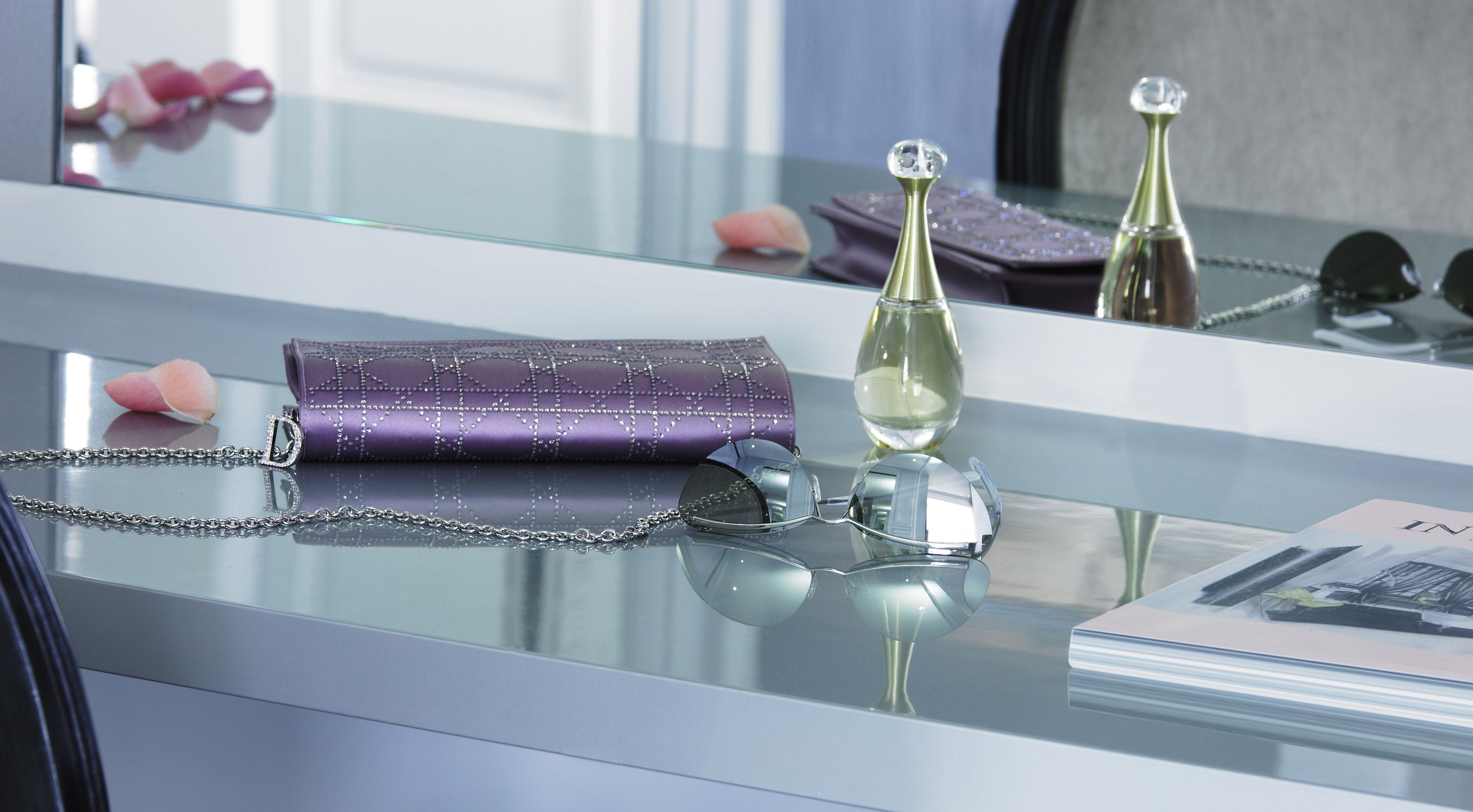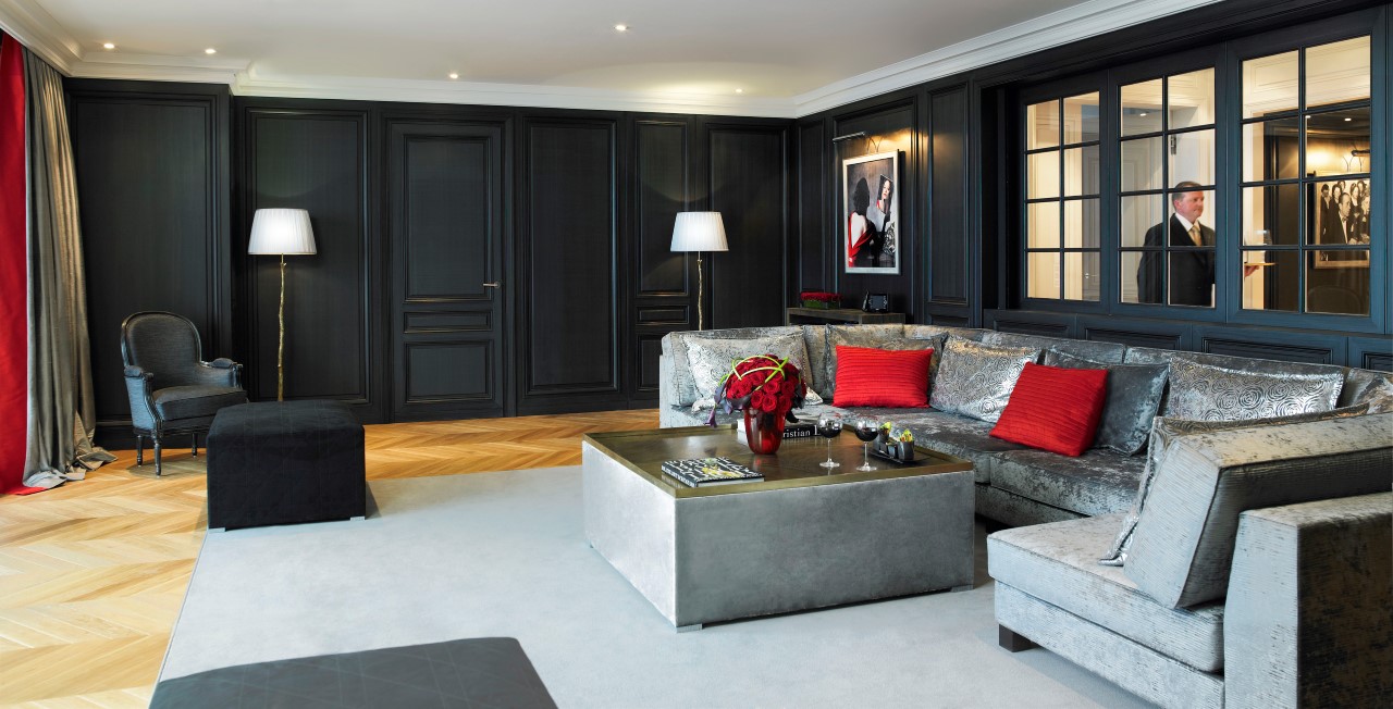 Tout respire l’élégance dans cette suite d’exception. Du dernier flacon du parfum Dior J’Adore au sac flamboyant Lady Dior, en passant par les dégradés de gris chers à l’inventeur du New-Look.