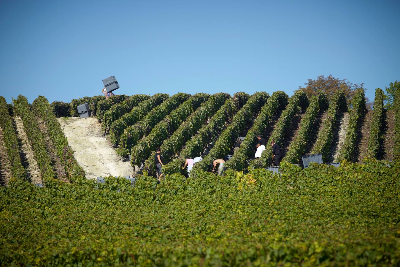 Durant plusieurs semaines, tout le domaine est mobilisé pour la récolte des raisins, qui nécessite un précieux savoir-faire et s’effectue manuellement, de manière traditionnelle. 200 hectares sont à vendanger, avec la présence de trois cépages, le Chardonnay, raison blanc à jus blanc qui se réserve la part belle Côte des Blancs oblige, le Pinot Noir et le Meunier produisant tous deux des raisins noirs à jus blanc.