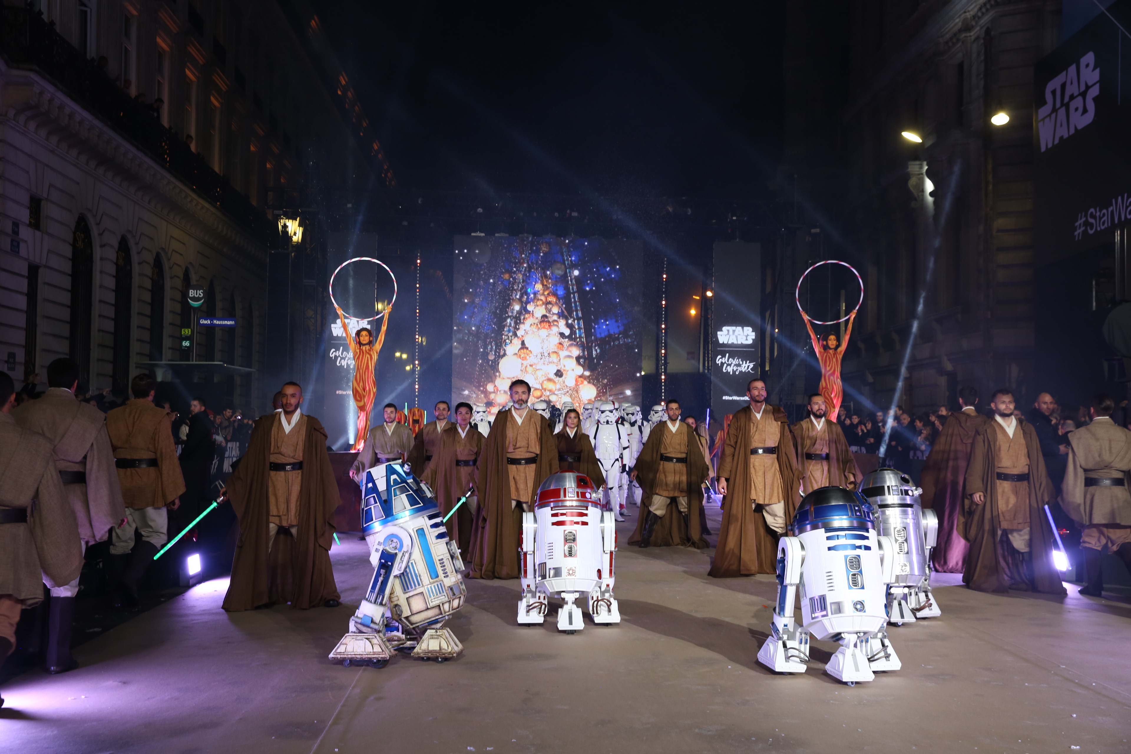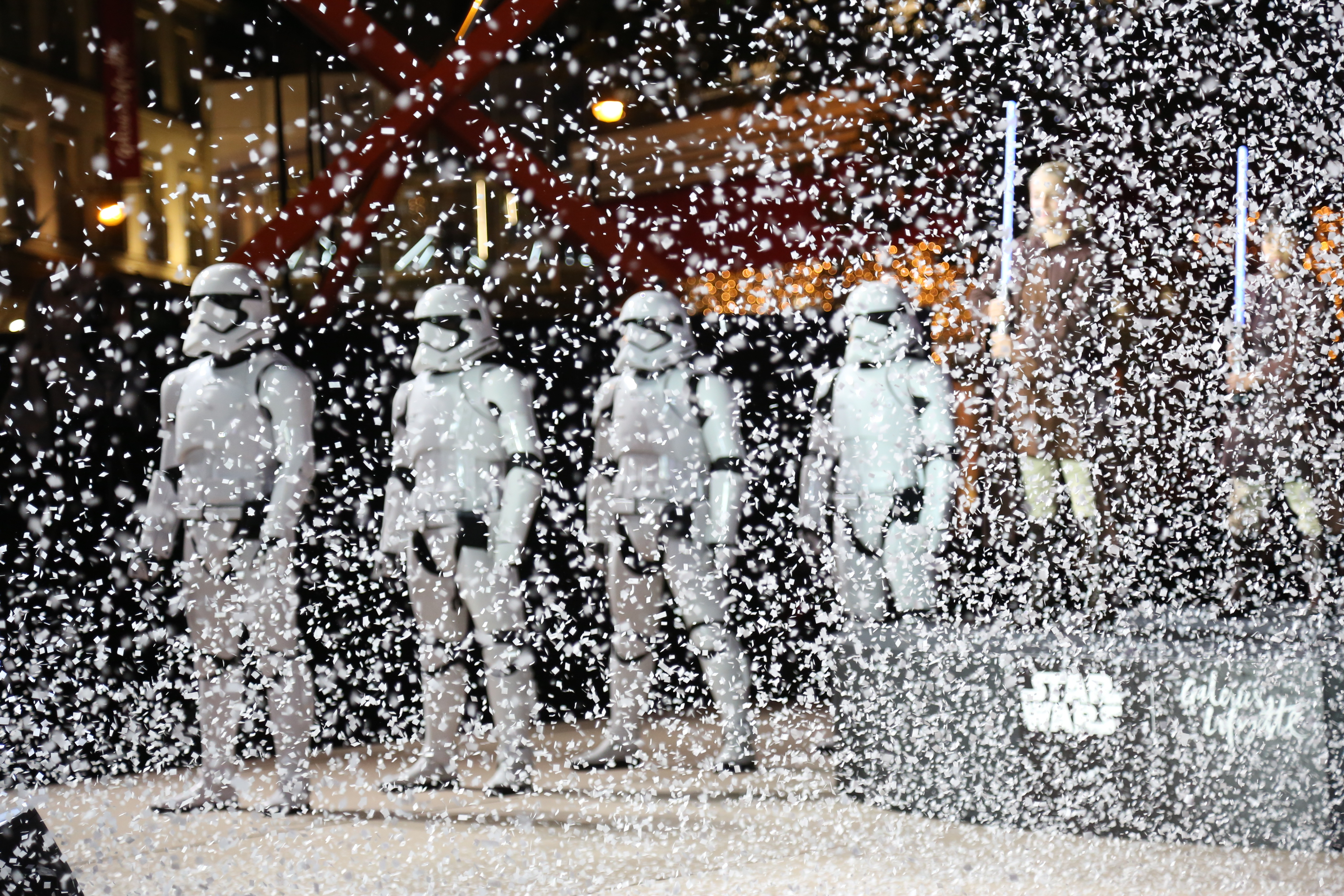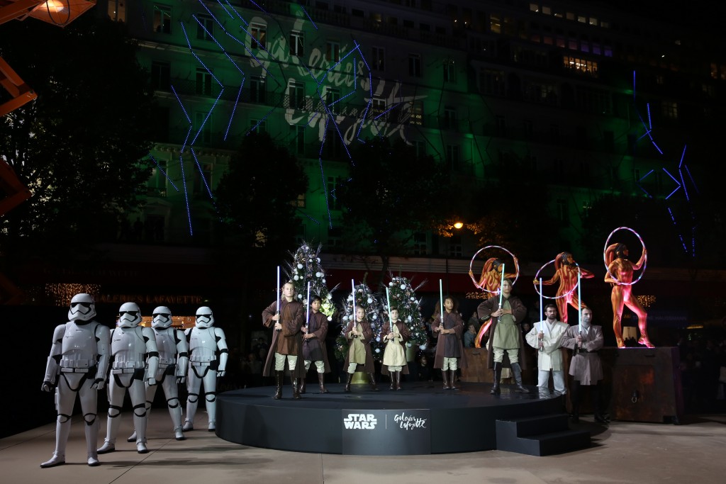 Un événement unique prenait le relais Boulevard Haussmann pour célébrer le coup d’envoi du Noël d’une autre planète avec STAR WARS™ en tant qu’invité exceptionnel pour le plaisir des petits et des grands. Devant un public venu en masse, 75 artistes ont donné naissance à un show spectaculaire mettant en scène un défilé de troupes Impériales, un entrainement de Jedi et une parade de droïdes, le tout sublimé par d’impressionnantes cascades, des jeux de lumière et des effets spéciaux.