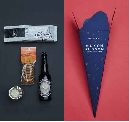 Et pour son premier Noël, la Maison Plisson propose le plus gourmand des cadeaux ! Une pochette surprise à remplir avec les produits de son choix. Comme les adultes sont avant tout des grands enfants, Delphine Plisson a imaginé un cornet surprise « comme quand on était petits ».