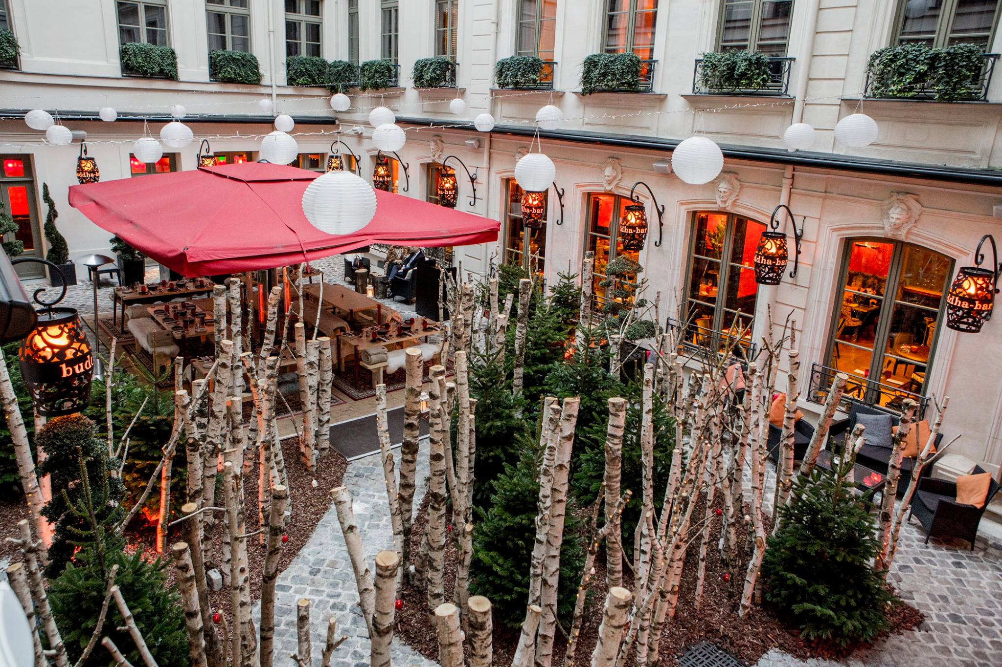 Nichée au cœur de l’établissement, une belle cour parisienne pavée abrite une oasis de bien-être isolée du bruit et de l’effervescence de la capitale, où il fait bon déguster un cocktail ou profiter de la douceur ambiante.