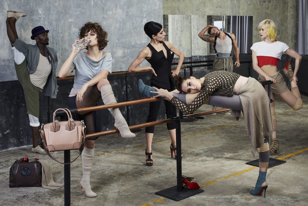 De jeunes danseurs se retrouvent dans une salle de danse. Hommes et femmes se chaussent de modèles de la collection Automne Hiver avant de s’étirer et de se préparer pour la séance. Coquettes, les danseuses au look soigné et coloré habillent leurs lèvres de rouge Louboutin quand leurs ongles parfaitement manucurés montrent les couleurs de la saison des vernis Louboutin.