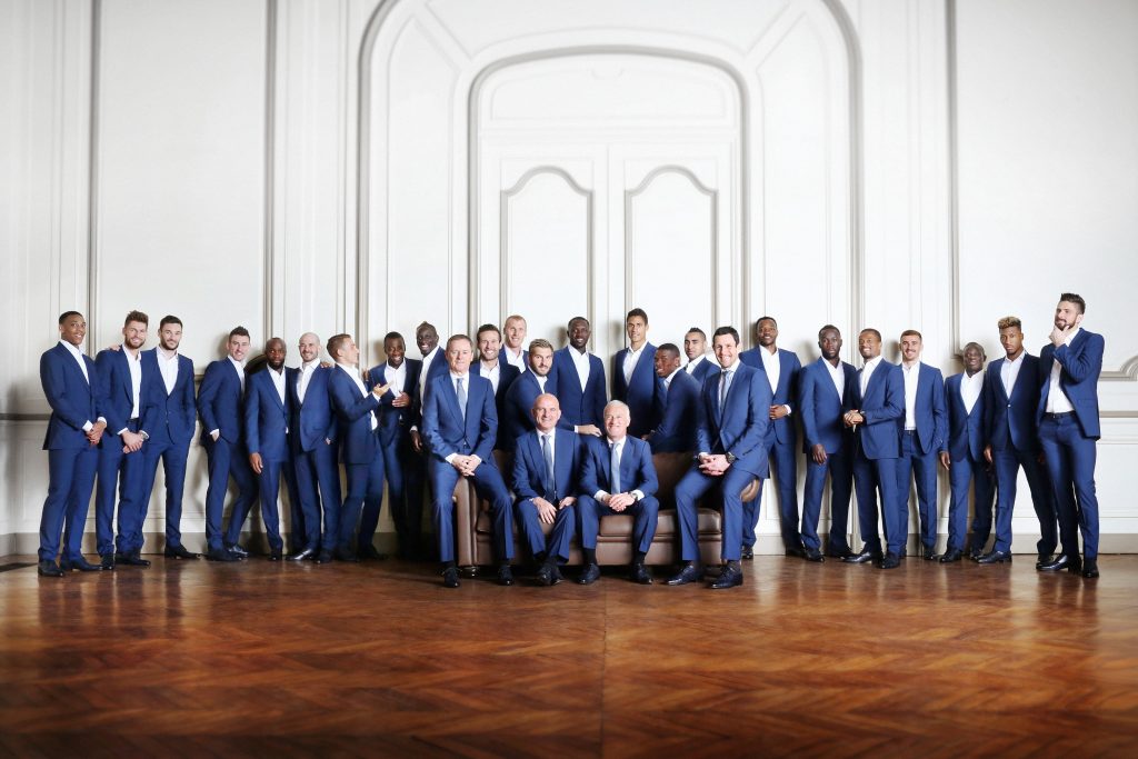 Si nos 23 joueurs sont en bleu sur le terrain, ils sont cette année également de bleu vêtus hors des stades grâce à leur nouvelle tenue officielle. Offrant une liberté de mouvement incomparable, elle a été entièrement réalisée aux mesures des joueurs et se compose d’un costume traditionnel deux pièces en laine super 150’s bleue, d’une chemise en popeline de coton blanc et de derbies bleu-nuit en veau patiné à la main.