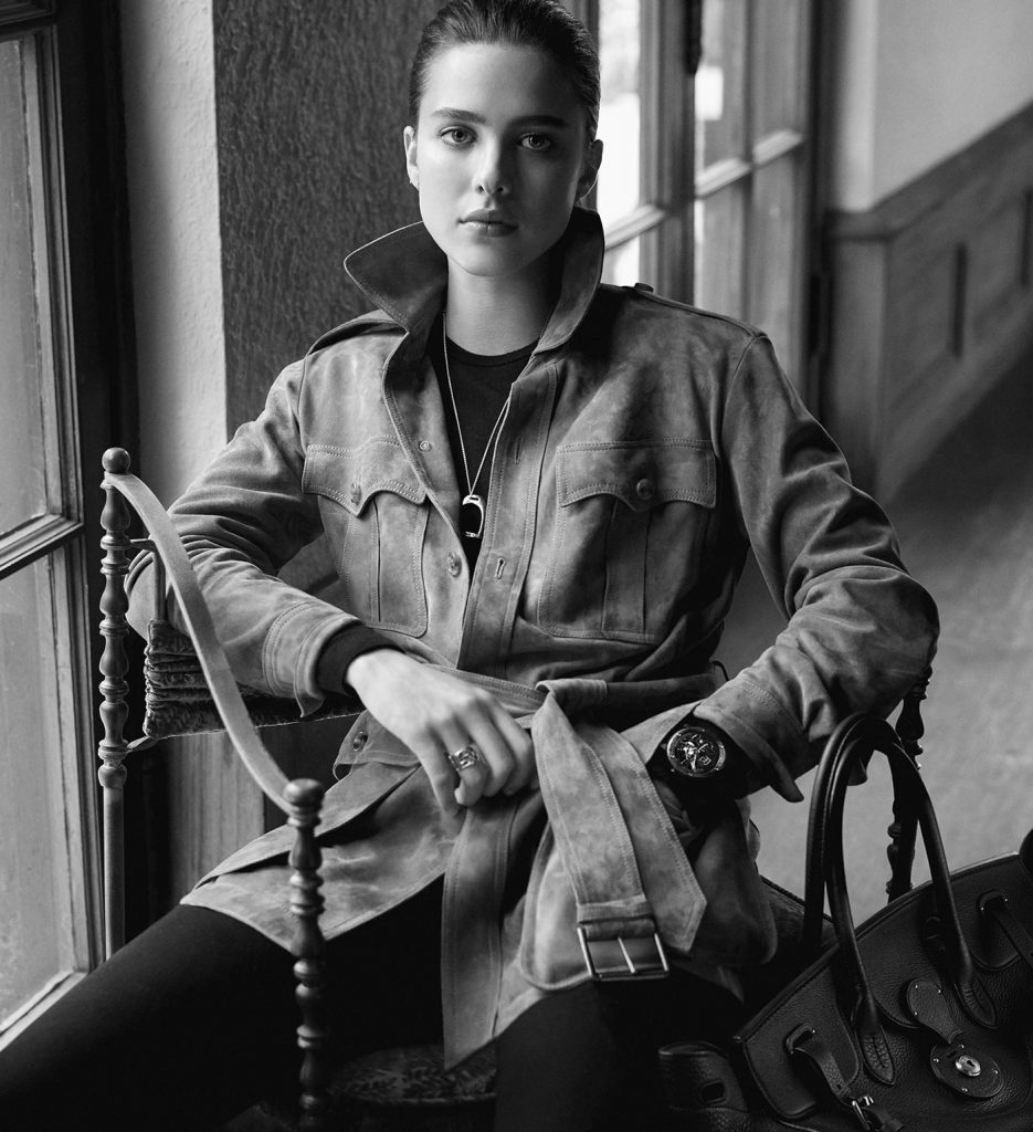 Pour l’actrice Margaret Qualley, qui porte la veste Safari RL, être une icône c’est être soi-même. La fille d’Andy MacDowell affirme ainsi son propre style sans contrainte en choisissant une pièce forte élégante. En daim souple, cette saharienne confectionnée en Italie recadre les détails utilitaires traditionnels du style safari, de la poche à soufflet aux surpiqûres épaisses, dans un univers de luxe emblématique.
