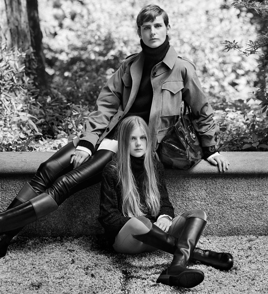 Ralph Lauren, qui a servi dans l’armée américaine dans les années 1960, évoque depuis longtemps le style militaire dans ses créations. Intemporelle et transgénérationnelle, la veste de treillis portée par le top Stella Tenant – qui pose ici aux côtés de sa fille Iris – est une réinterprétation de la coupe militaire d’époque dans un sergé japonais structuré.
