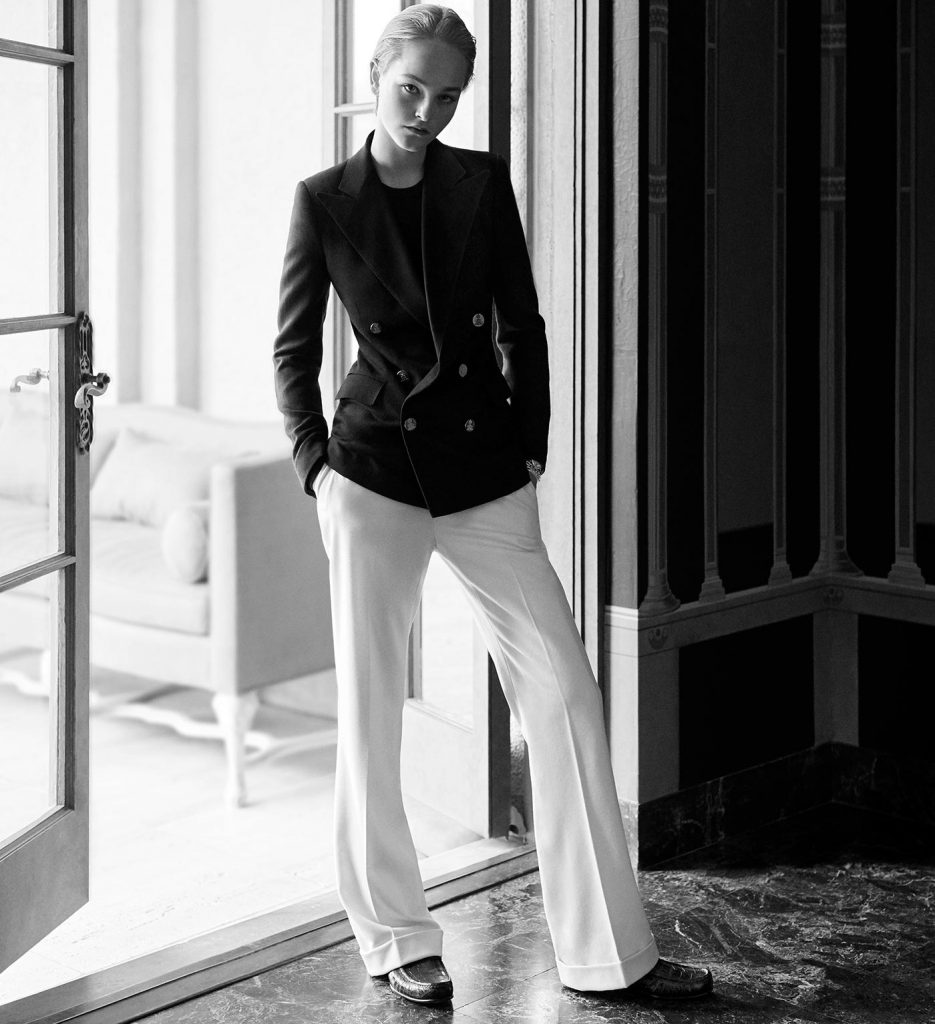 La révélation danoise Frederikke Sofie, qui porte la veste de Smoking, apprécie aussi les pièces polyvalentes, comme Jean Campbell. Dotée de revers en satin de soie et d’une coupe soulignant la taille, cette veste classique incarnant à la perfection l’univers et le savoir-faire Ralph Lauren peut être portée en toute occasion, associée à un jean ou à un pantalon.