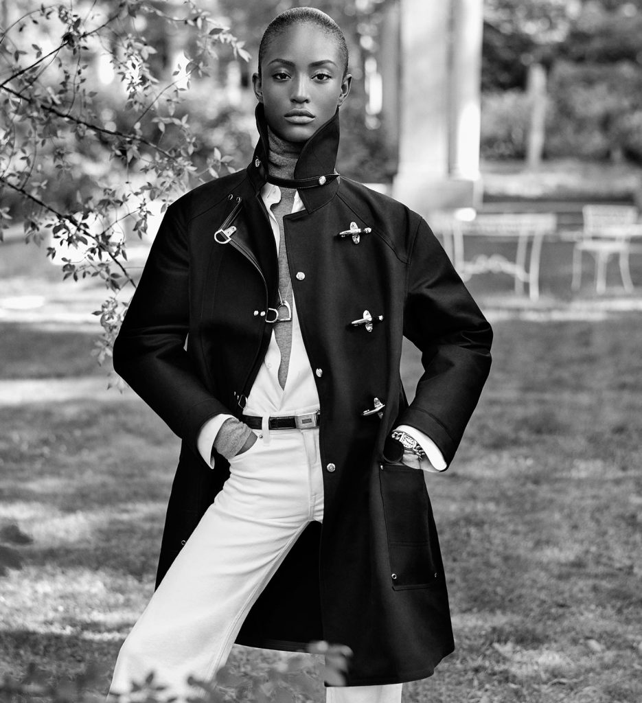 Vêtue du classique caban, le top chinois Fei Fei Sun irradie. Celle qui s’est fait remarquer en représentant la Chine lors de l’influent concours Elite Model Look en 2008, transcende cette pièce emblématique à l’allure structurée, inspirée par les uniformes d’officier de la marine et confectionnée aux États-Unis à partir d’une étoffe double face italienne en laine et cachemire, qui lui confère un toucher incroyablement doux.