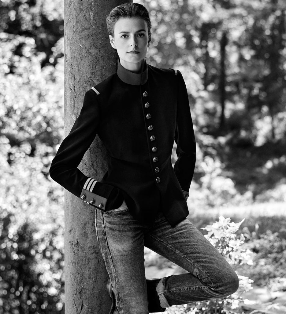 Jacquetta Wheeler, qui compte parmi les plus grands tops du monde depuis presque vingt ans, porte à merveille et avec beaucoup de simplicité l’iconique veste d’officier. Inspirée d’uniformes militaires masculins authentiques, cette veste en laine double face italienne a été repensée pour plaire à la femme moderne, avec sa forme cintrée élégante et sa bordure spécialement conçue.
