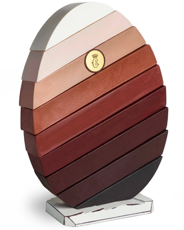©Philippe VaurèsLa première création, en édition limitée, est un oeuf présentant une déclinaison de 9 chocolats parmi les plus exceptionnels au monde, allant du chocolat blanc au chocolat noir grand cru du Pérou 72%, en passant par le chocolat au lait de République Dominicaine.