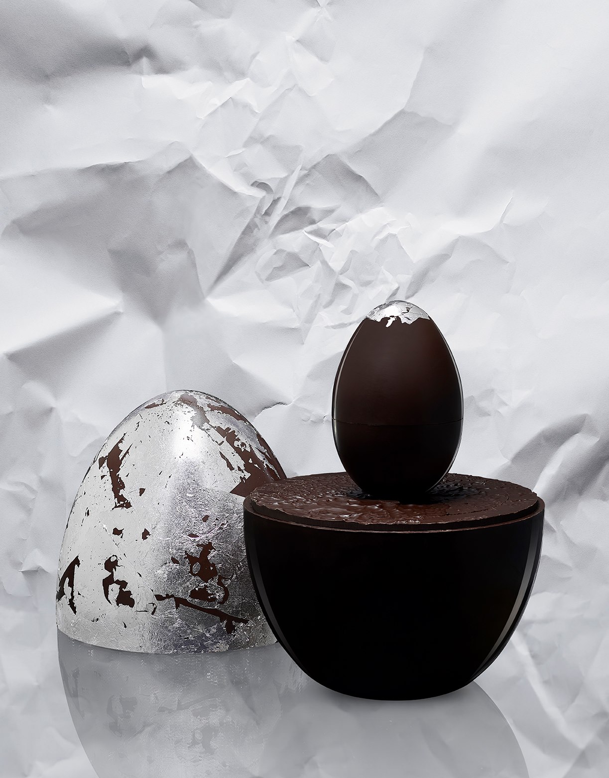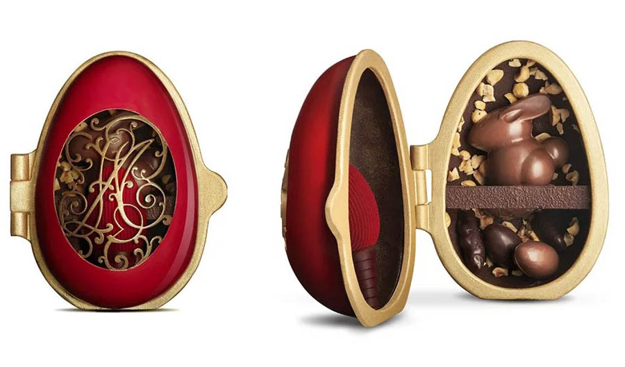 Cette année, Pierre Hermé bouscule les codes de l’œuf traditionnel en chocolat en imaginant une interprétation gourmande chocolatée du MOOD de la célèbre marque d’orfèvrerie française Christofle.