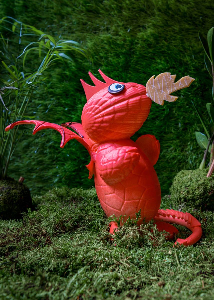 Le dragon Aka, rouge en japonais, représente la puissance tandis que le dragon vert Jaki est synonyme de malice. Les deux créations en chocolat blanc Opalys 33% au goût lacté et délicat, sont sublimées d’une robe rouge ou verte, la flamme est réalisée en chocolat inspiration passion pour la touche fruitée.
