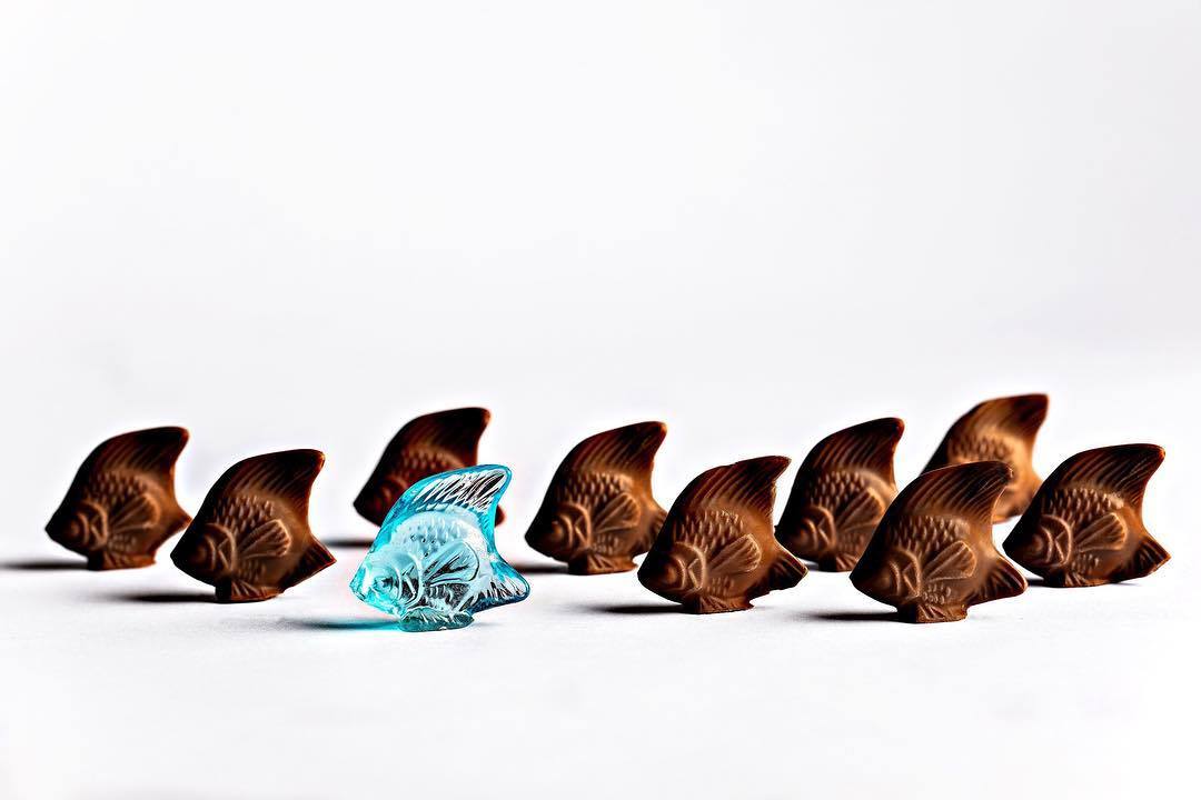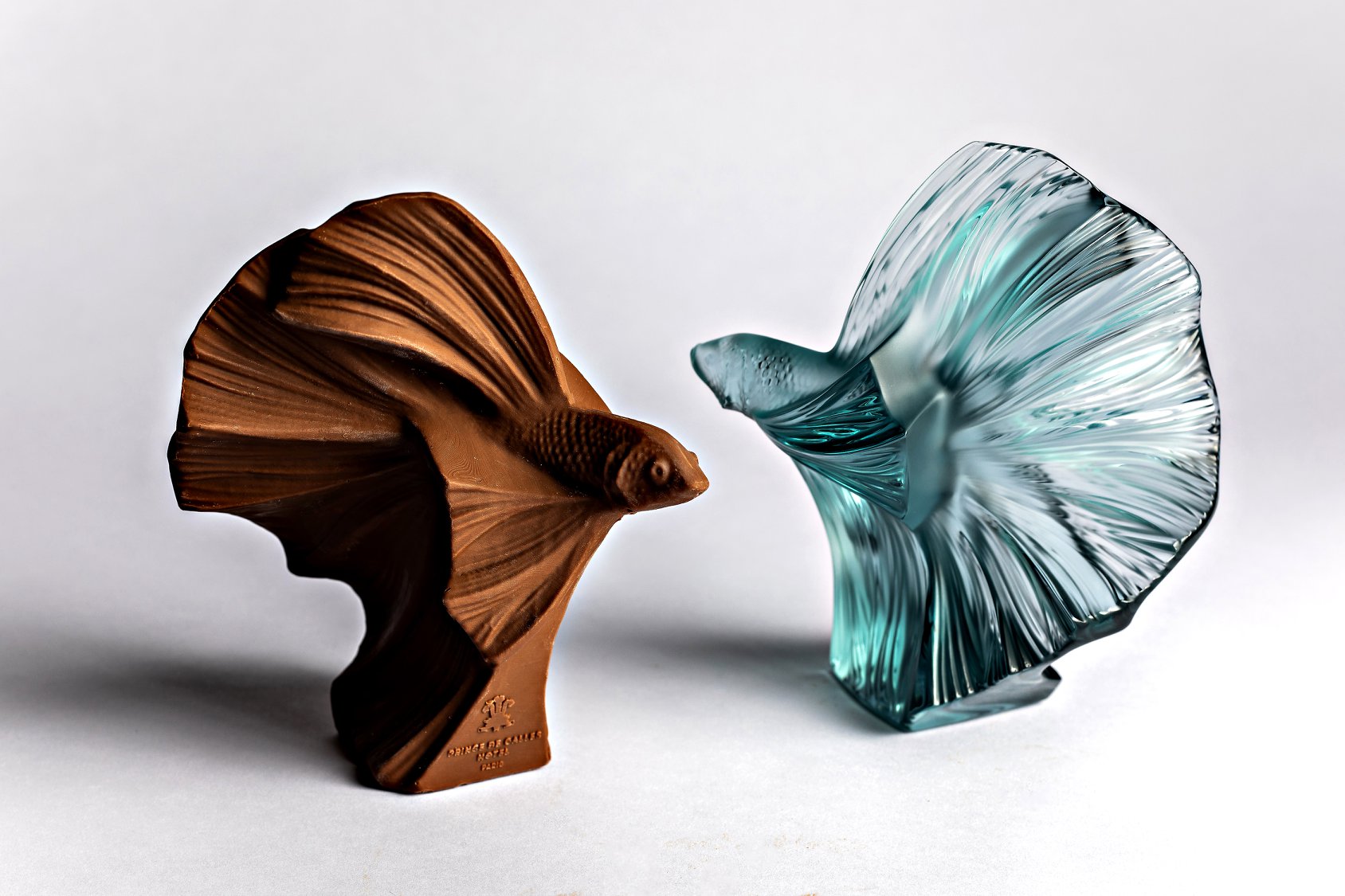 Magnifiquement réalisé, le « Poisson Combattant du Prince de Galles » se compose d’une délicate couche de chocolat au lait 43% de Madagascar ou chocolat noir 73% du Vénézuela, garni d’un praliné aux amandes. Huit créations cachent en leur cœur un ticket d’or qui permettra aux chanceux de se rendre au sein d’une boutique Lalique afin de se voir offrir un petit poisson en cristal.